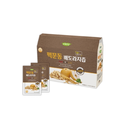 제품명 : 맥문동 배도라지즙 식품의 유형 : 액상차 생산자 및 소재지 : 유기농샵 (전라남도 담양군 담양읍 에코산단2로 3) 제조연월일(유통기한) : 상시제조 상품이며 소비기한은 제조일로부터 1년입니다. 용량(중량), 수량, 크기 : 80ml 21포 주원료, 함량, 원료산지 : 도라지혼합추출액81.1%[고형분2.7%이상,도라지70%(국내산),맥문동30%(국내산),정제수],배농축과즙18.9%(69Brix,국내산) 영양성분 표시 대상 여부 : 총 내용량 80ml 37Kcal 나트륨2.8mg(0%),탄수화물8.5g(3%),당류5.7g(6%),트랜스지방0g(0%),포화지방0g(0%), 콜레스테롤0mg(0%),단백질0.5g(1%) 유전자 재조합 식품 여부 : 해당없음 주의사항 : 원재료 성분에 알레르기, 과민반응의 증상이 있는 소비자는 전문의 상담이나 원재료 확인 후 섭취하시기 바랍니다. 수입식품여부 : 해당없음 소비자상담 관련 전화번호 : 1566-5246 사업자 등록번호 : 409-86-48791대표자명 : 최영형전자우편주소 : k1014hh@naver.com주소 : (57309) 전라남도 담양군 전라남도 담양군 담양읍 에코산단2로 3통신판매업신고번호 : 2017-전남담양-0023