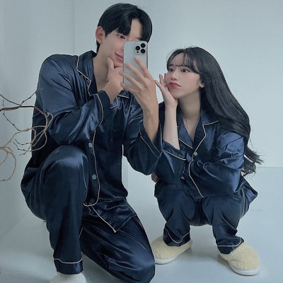 품명 및 모델명 : 청년잠옷 클래식 고급 실크 커플잠옷 반팔 긴팔 상하의세트