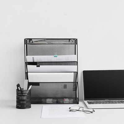 타공판 아래 공간에 책상위에 쌓아뒀던 서류들을 정리하고자 걸이형 메탈선반을 구매했습니다. |