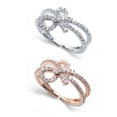 여자 리본 매듭 큐빅 파베세팅 프리 2컬러 반지