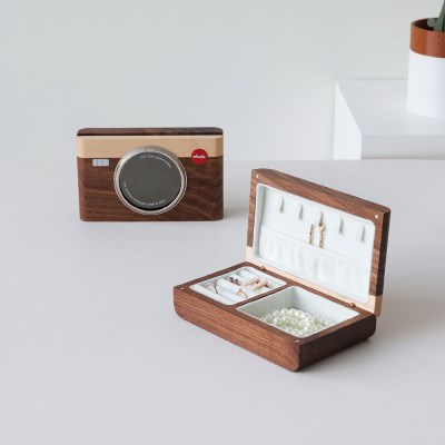 카메라 디자인 우드 휴대용 주얼리 보관함 여행용 악세사리 케이스