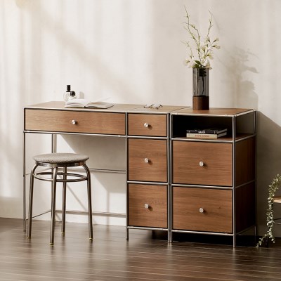품명 : 헤이몰리 헤이즈 미드센츄리 모듈 800 서랍 화장대 + 400 서랍장 세트색상 : 퓨어화이트,트루월넛구성품 : 화장대주요 소재 : LPM,E0,스테인리스 외제조자(수입여부) : 리빙디자인연구소OEM제조국 : 대한민국크기 : 화장대: W870 x D400 x H760 mm