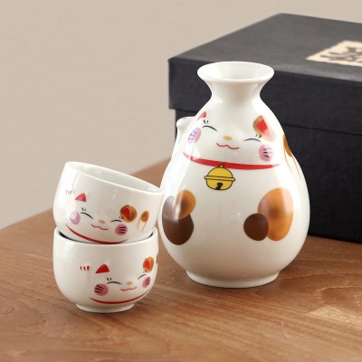 마네키네코 도자기 사케잔 세트 3P