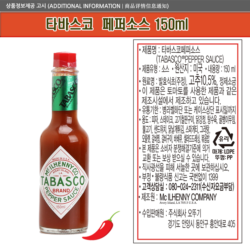 타바스코 핫소스 150ml