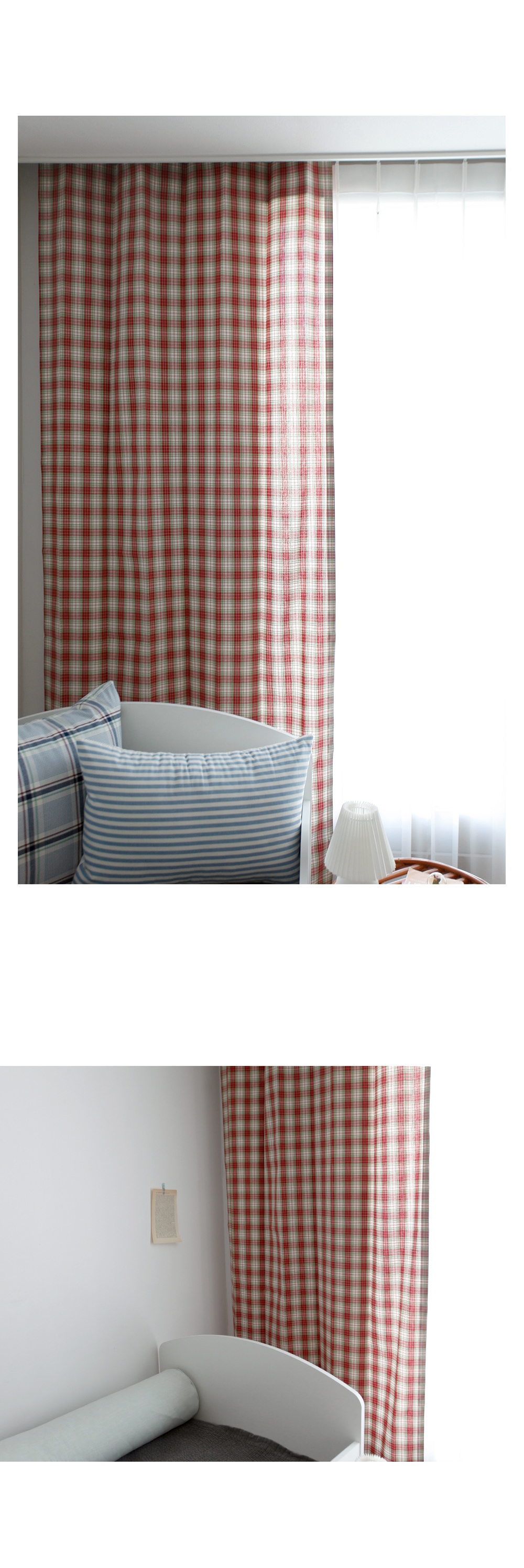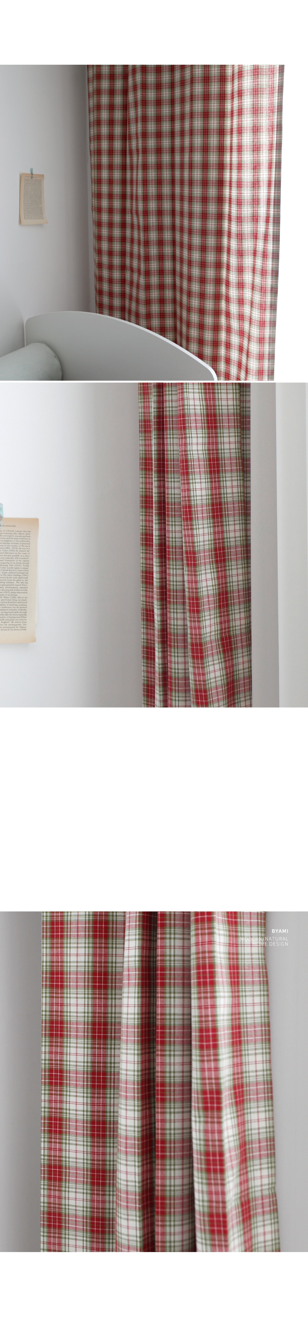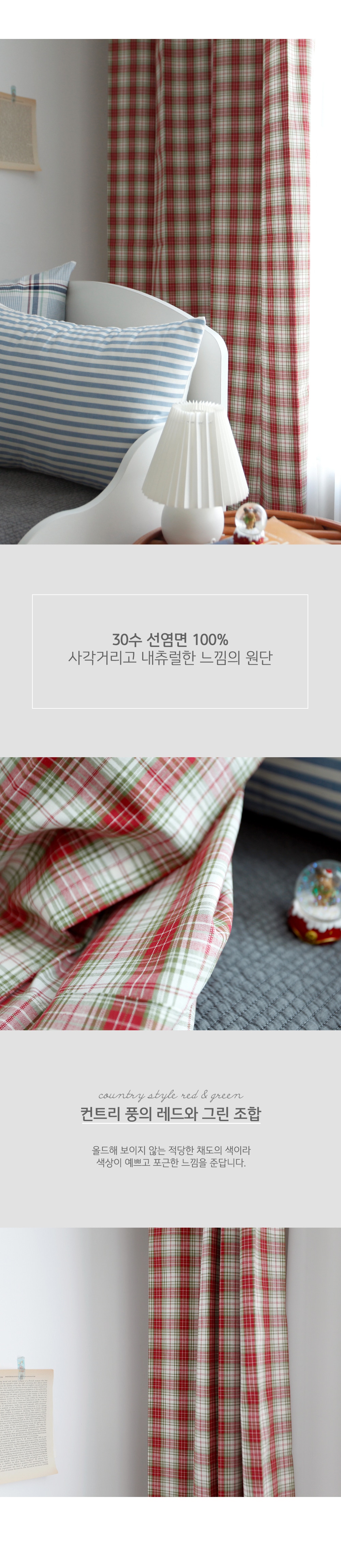 레드와 그린 체크의 선염소재로 어디에나 잘 어울리는 컬러감입니다. . 빈티지한 컬러감과 체크무늬가 아이방 인테리어나 가림막 커튼에 적당합니다.