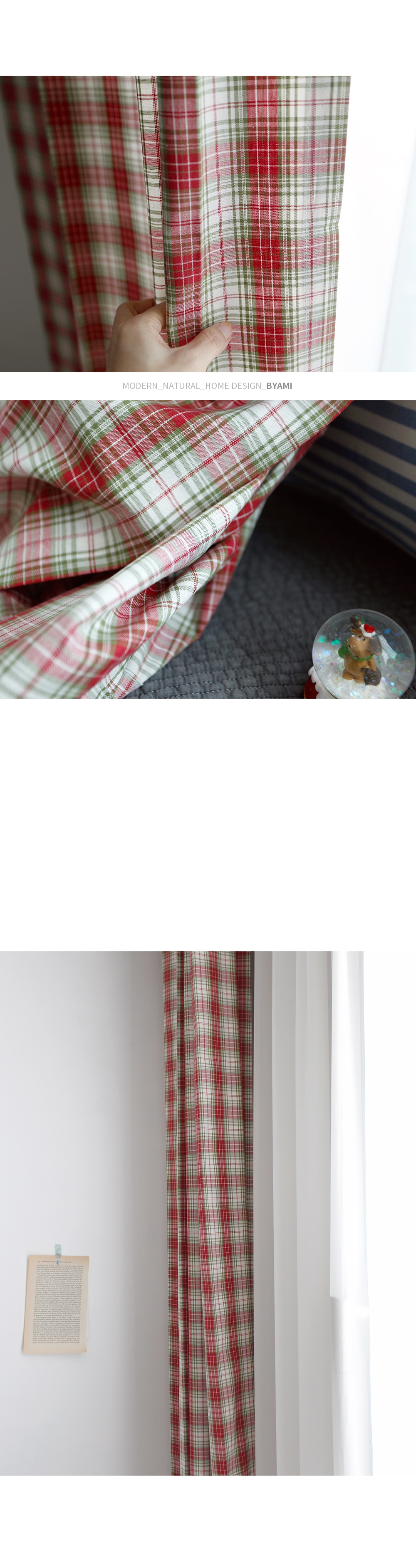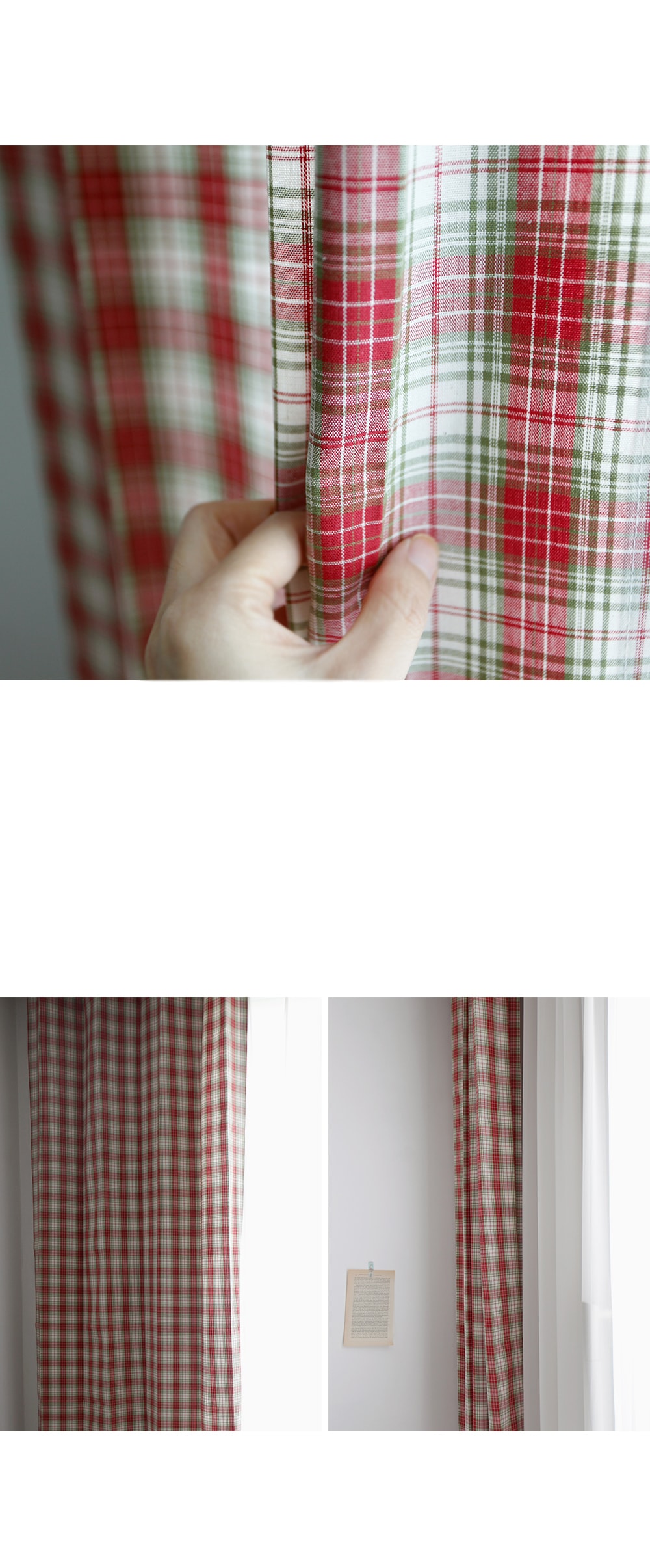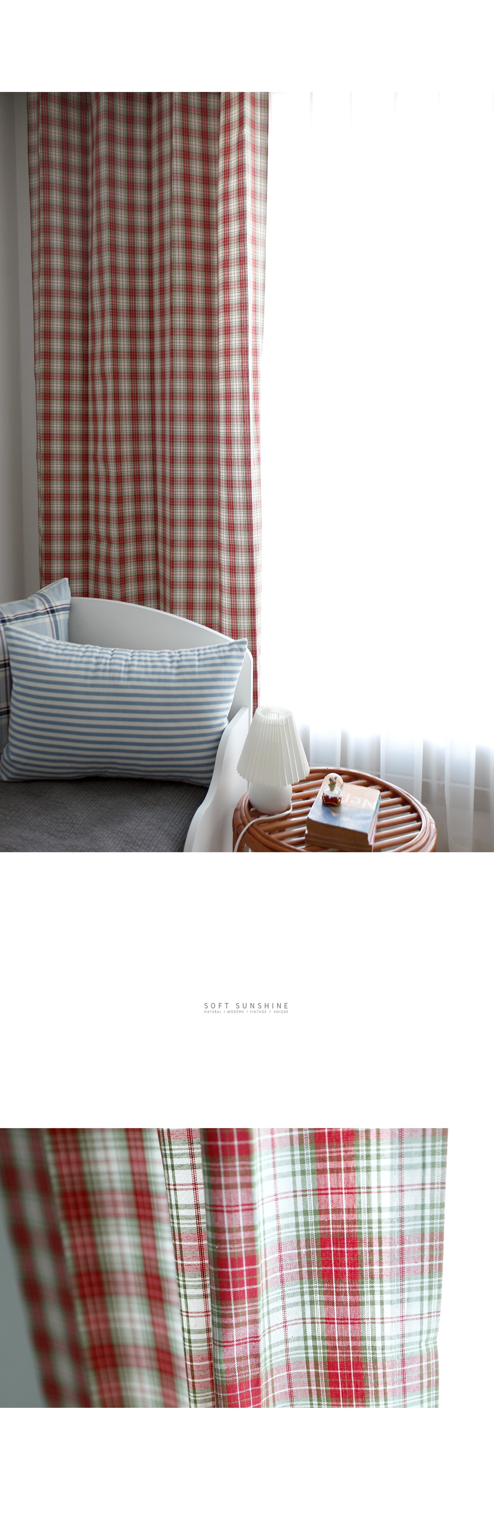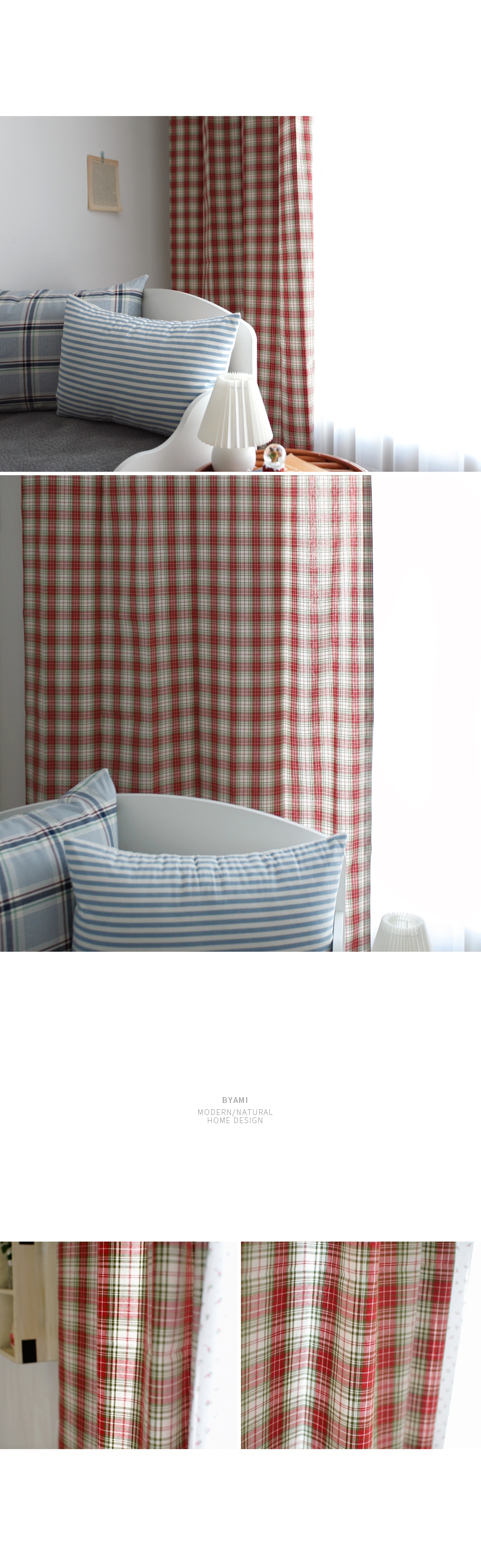 레드와 그린 체크의 선염소재로 어디에나 잘 어울리는 컬러감입니다. . 빈티지한 컬러감과 체크무늬가 아이방 인테리어나 가림막 커튼에 적당합니다.