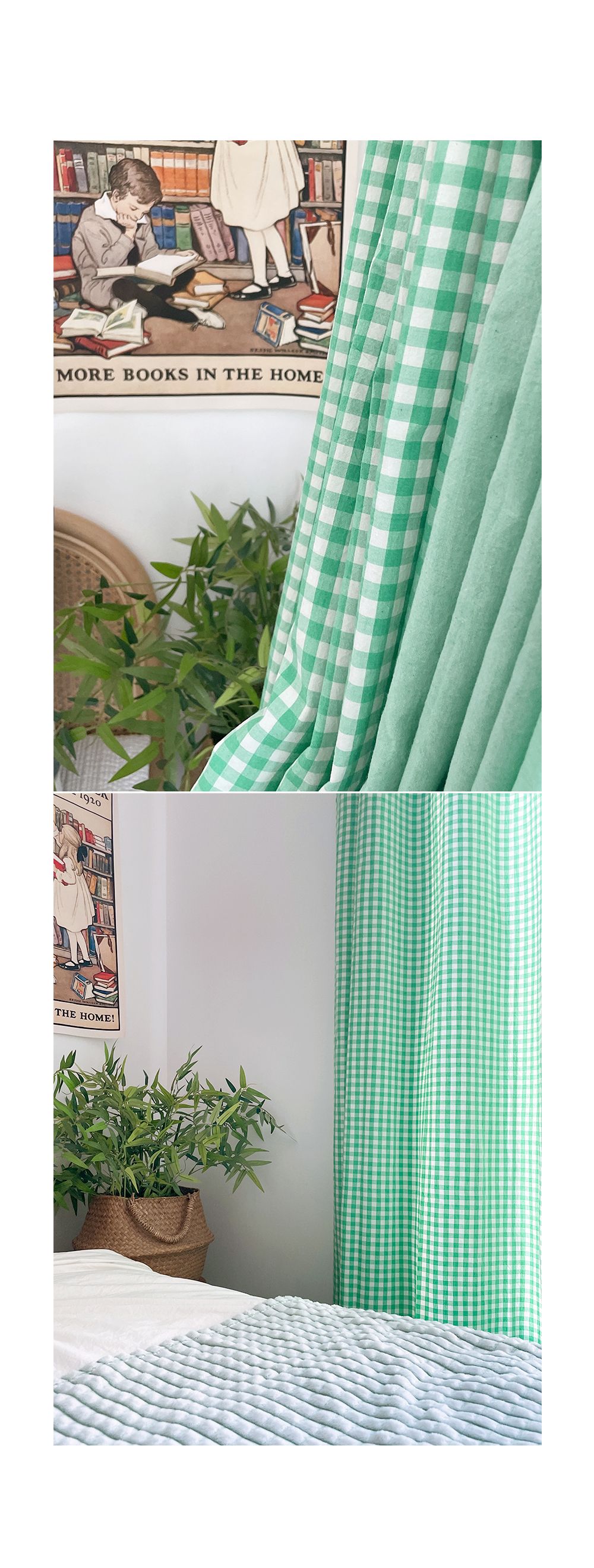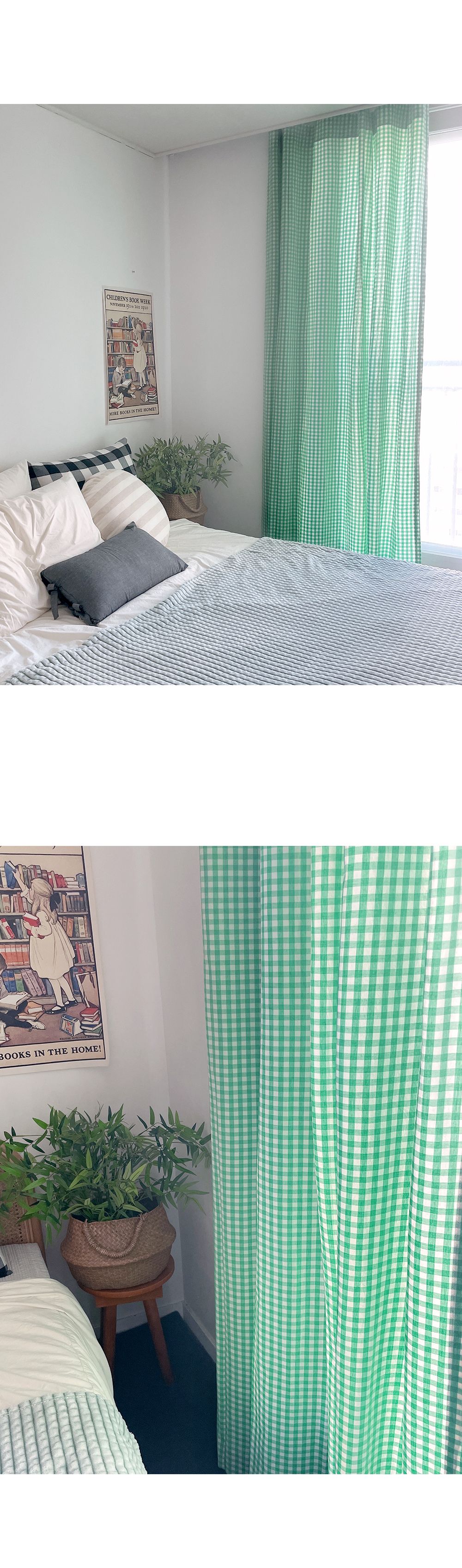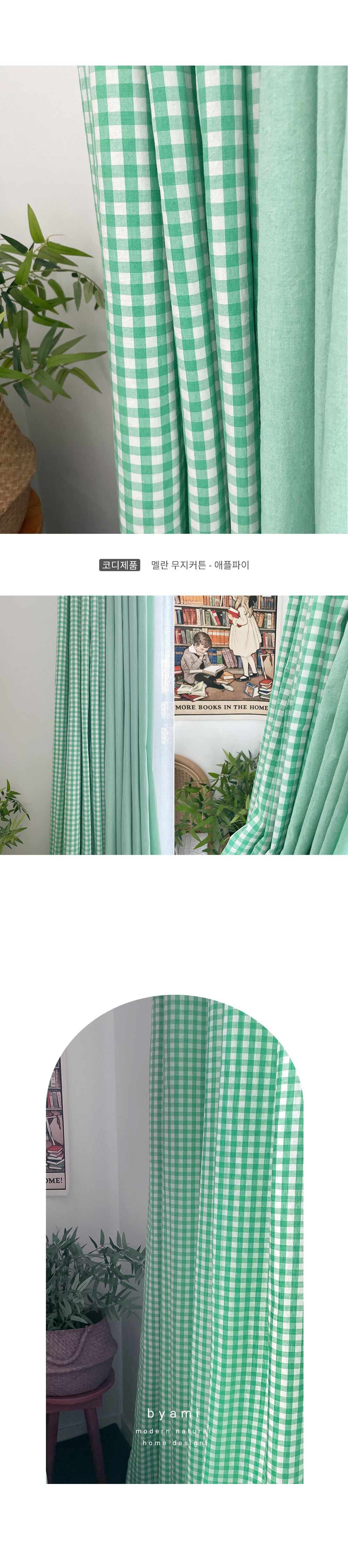 바이아미의 멜란 체크 커튼 시리즈입니다. 기존의 멜란 체크 커튼이 파스텔톤의 은은한 컬러였다면 좀 더 청량한 색상의 애플그린 컬러가 추가되었어요 청사과 느낌의 시원함과 선명한 포인트의 컬러감이 우리아이방을 더 환하게 만들어줄거예요 ^^