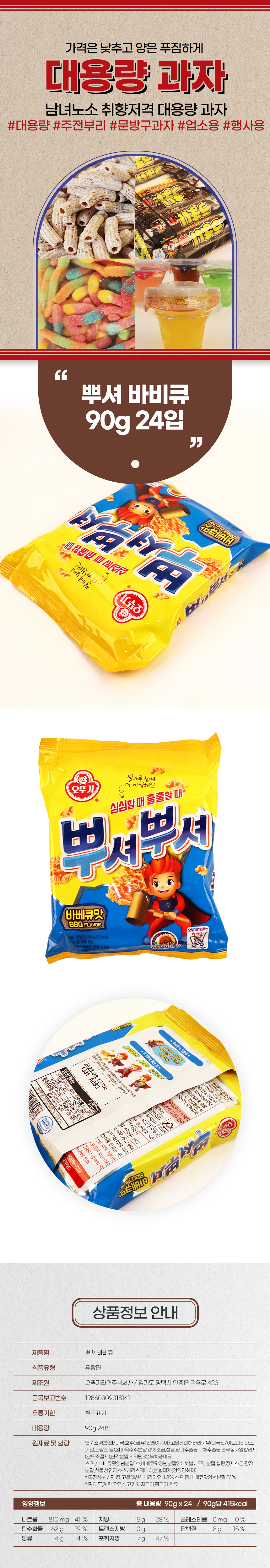 해당 상품은 / 오뚜기 뿌셔 바비큐 90g 24입 [박스] / 구성의 상품입니다.
