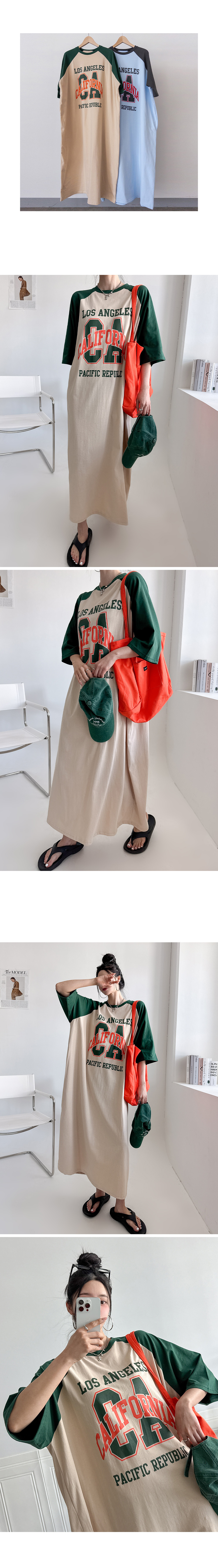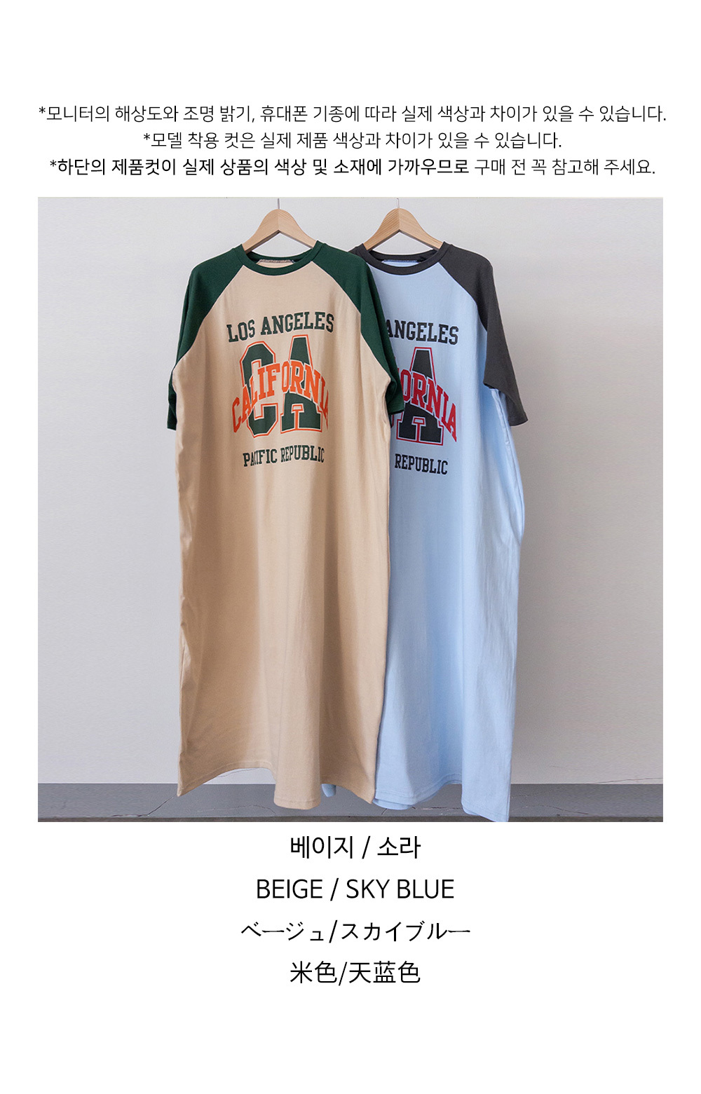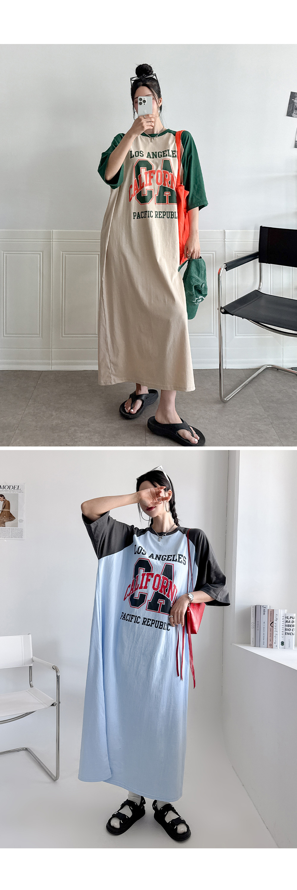 나염 면 나그랑 배색 반팔 롱 원피스 OP0482