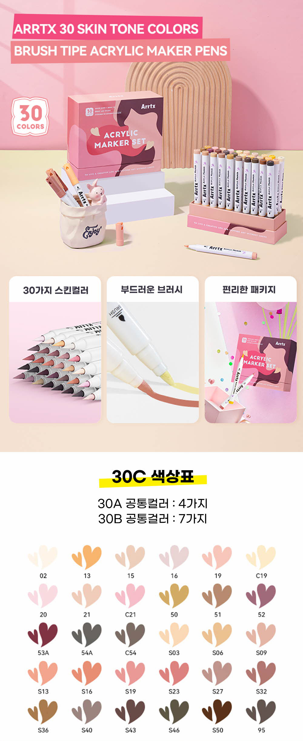아트엑스 아크릴 패브릭 마카 30색 세트
