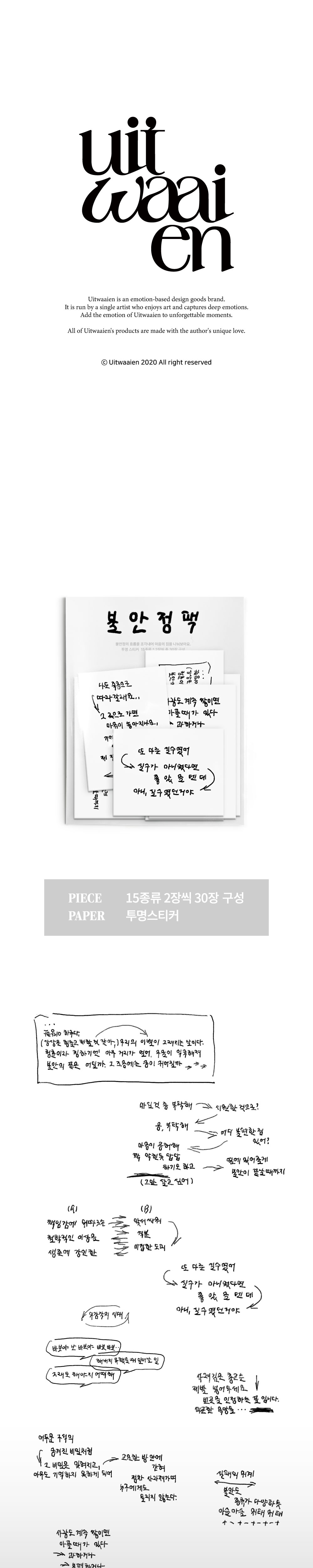 투명스티커 15종류 2장씩 총30장의 구성으로 이루어진 스티커팩입니다.