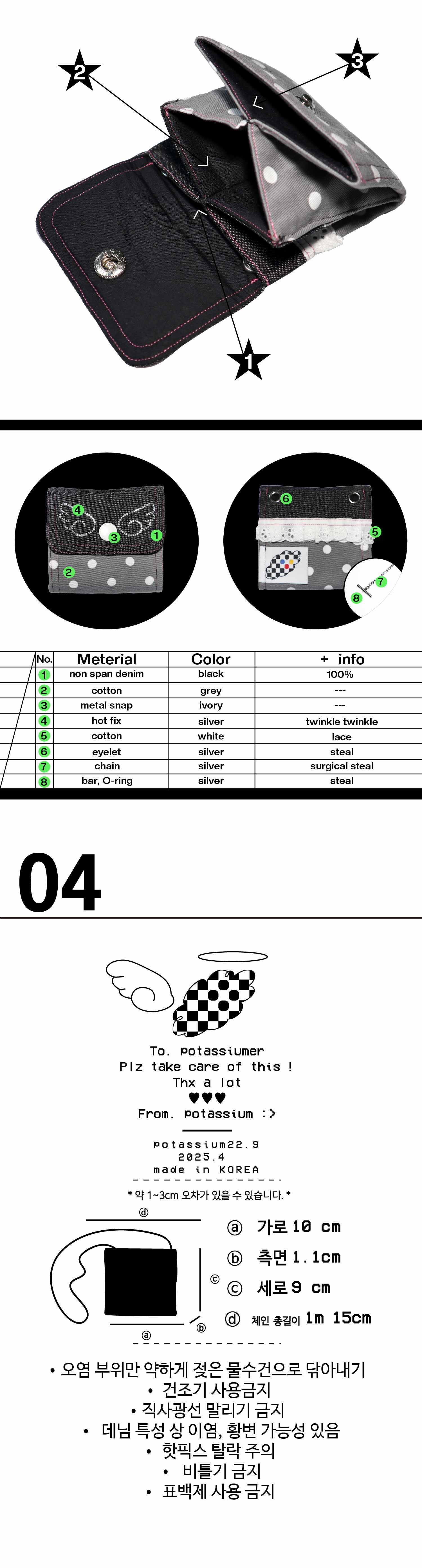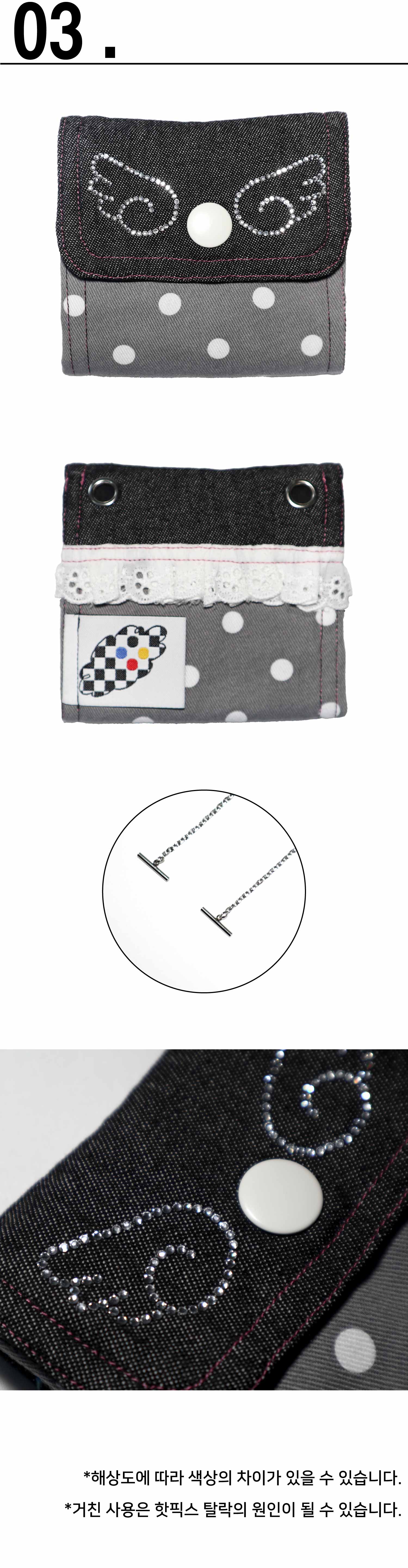 ※ 과도한 힘으로 잡아 당길 시 체인과 지갑의 접합부 ( 0링 )가 끊어질 수 있습니다. 주의해주세요.