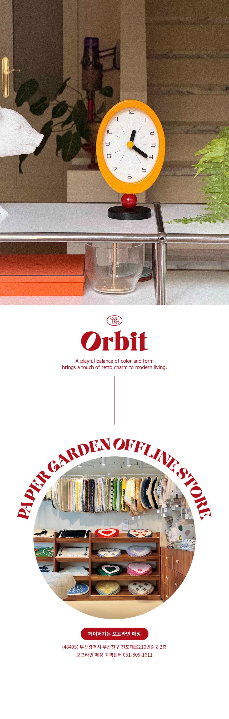 | - Product information - 페이퍼가든 오르빗 탁상 시계를 소개합니다. 부드럽게 흐르는 곡선과 균형 잡힌 원형 디자인이 돋보이는 오르빗 탁상 시계는, 단순한 시간을 알려주는 도구를 넘어 공간의 무드를 완성하는 오브제로 자리합니다. 깔끔한 형태 안에 세련된 감각을 담아내, 어떤 공간에서도 자연스럽게 어울리며 존재감을 드러냅니다. 책상 위 포인트 오브제는 물론, 침실이나 거실에서도 은은한 인테리어 효과를 선사합니다. 실용성도 갖추면서 색다른 포인트의 소품을 찾고있다면 오르빗 탁상 시계는 어떨까요? *본 상품은 건전지 미포함 상품이며, AA 건전지 1개가 사용됩니다. |