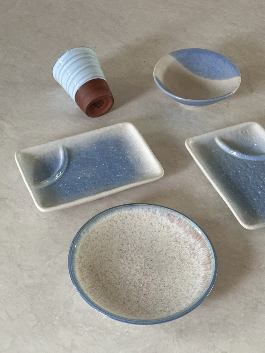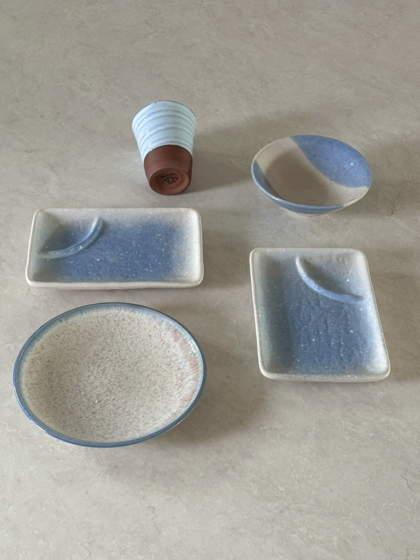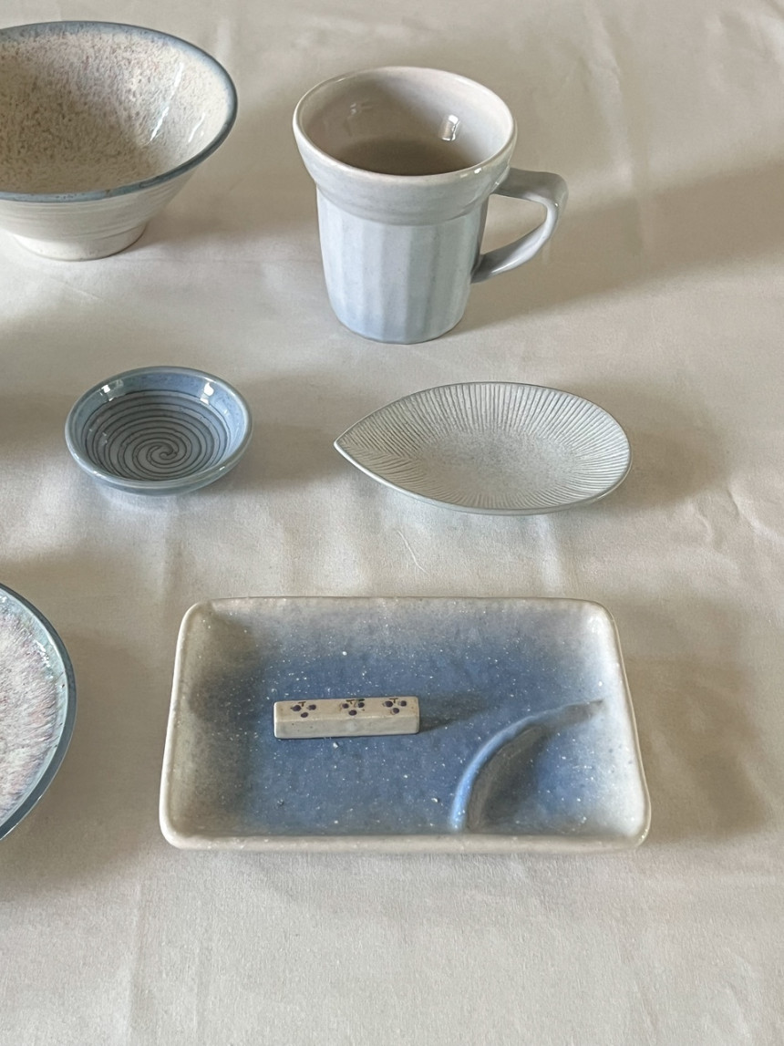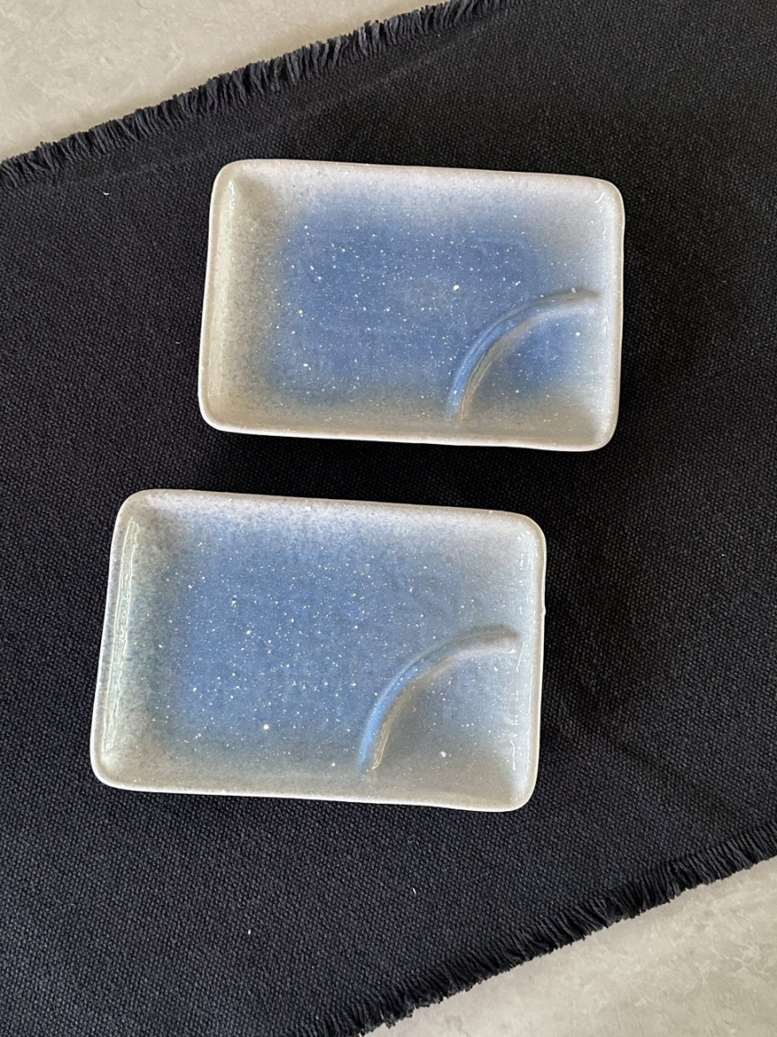 블루 나눔 접시 바탕에 옅은 블루 색상을 깔고 하얀점들을 박아 초저녁을 연상케 하는 그릇이에요.