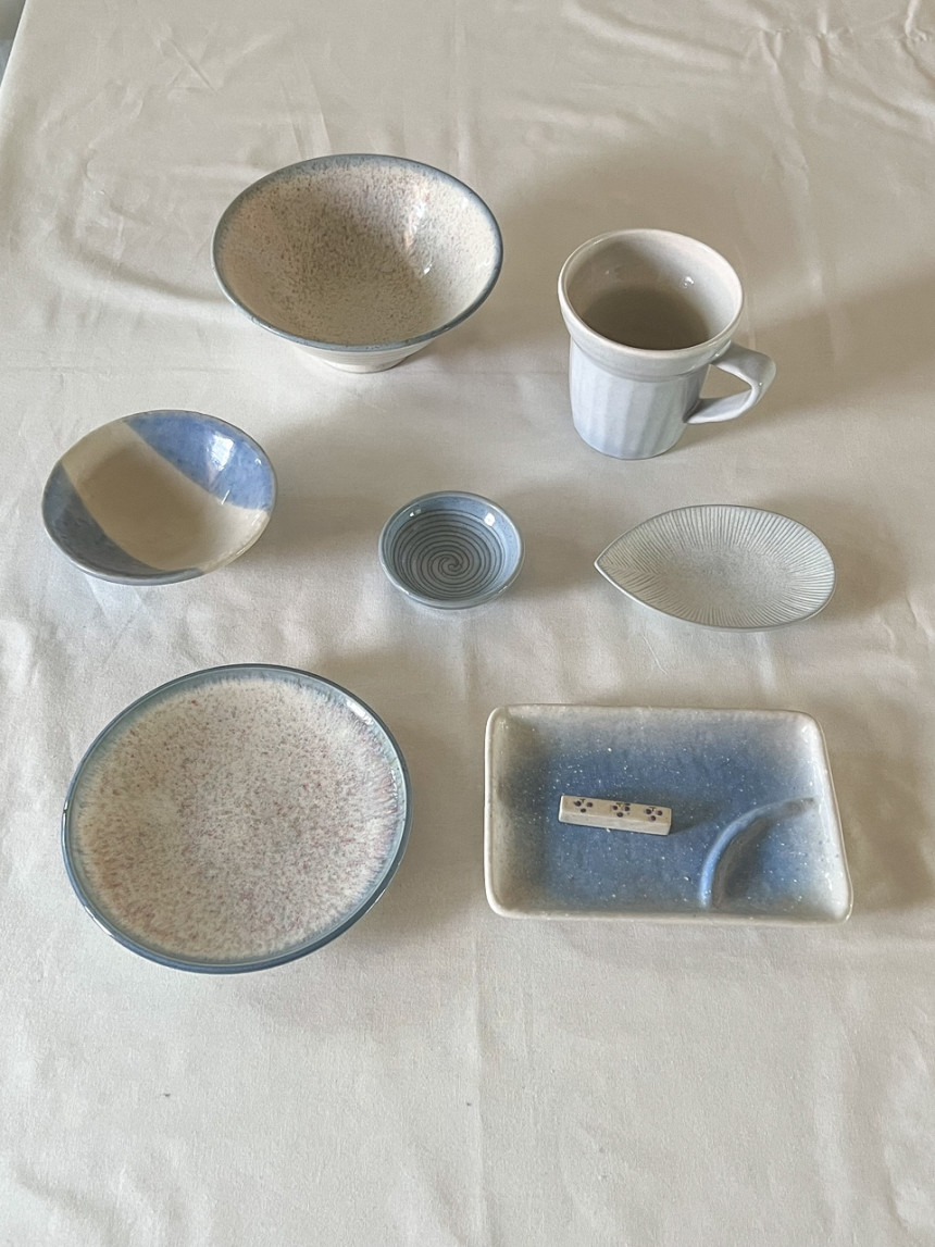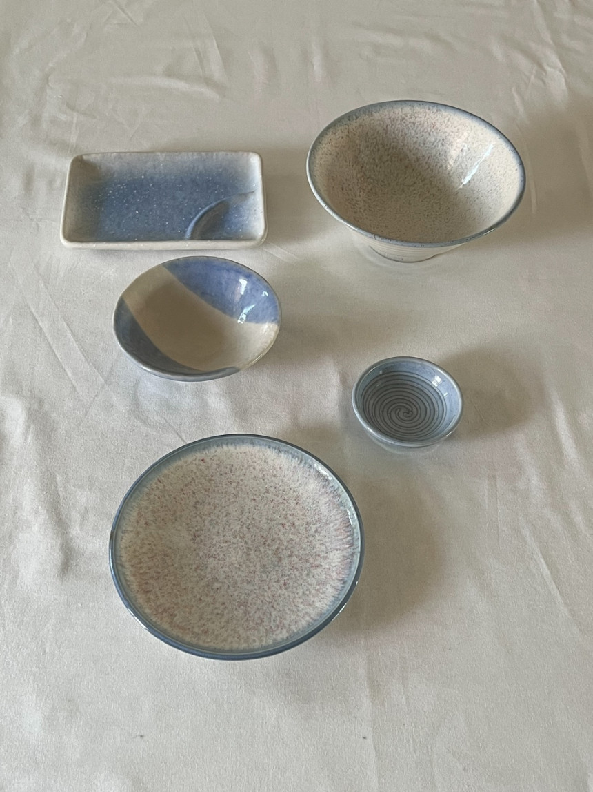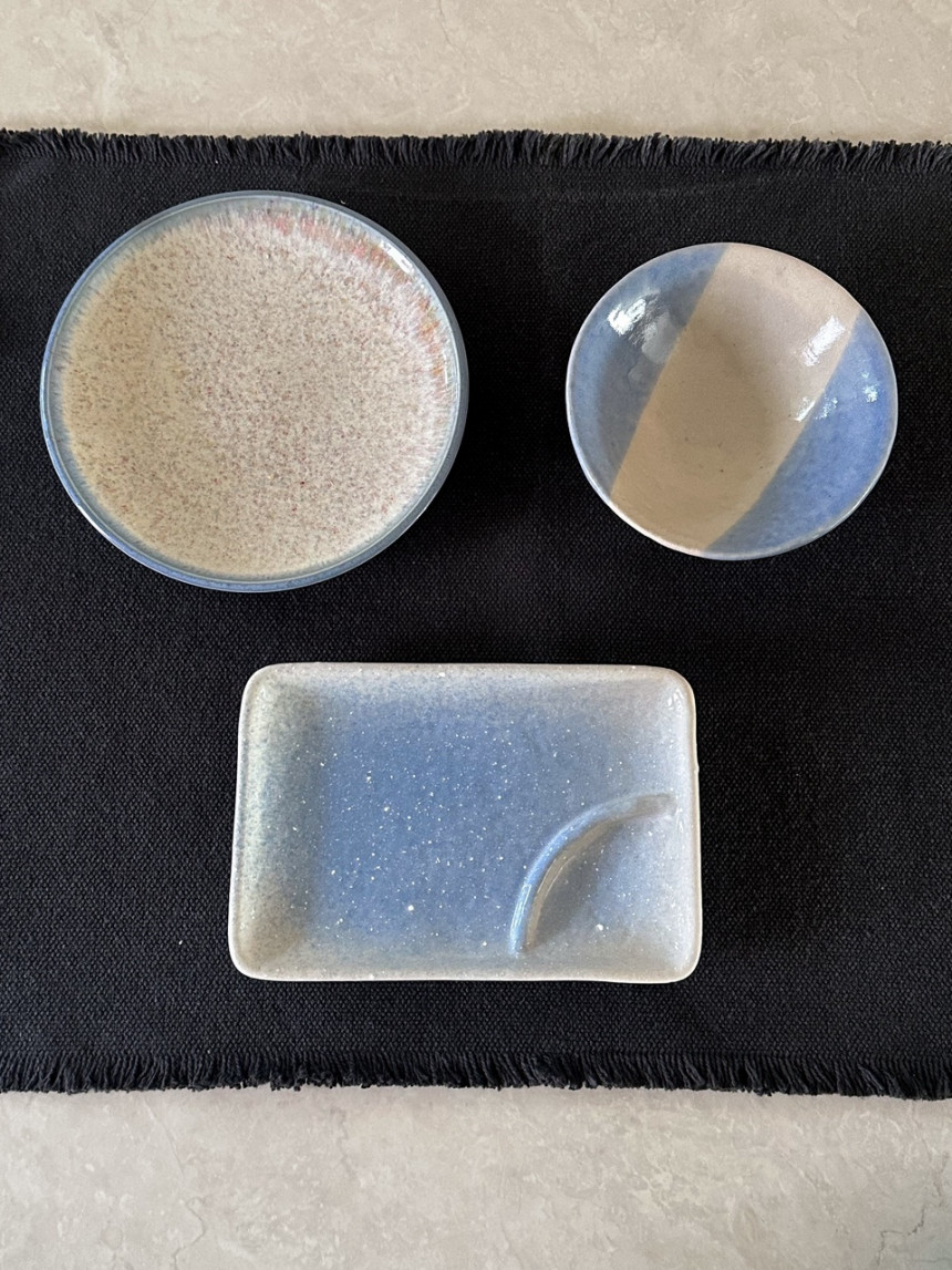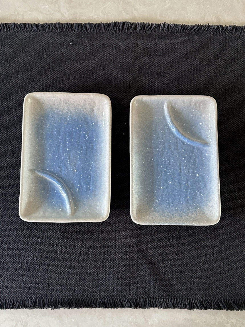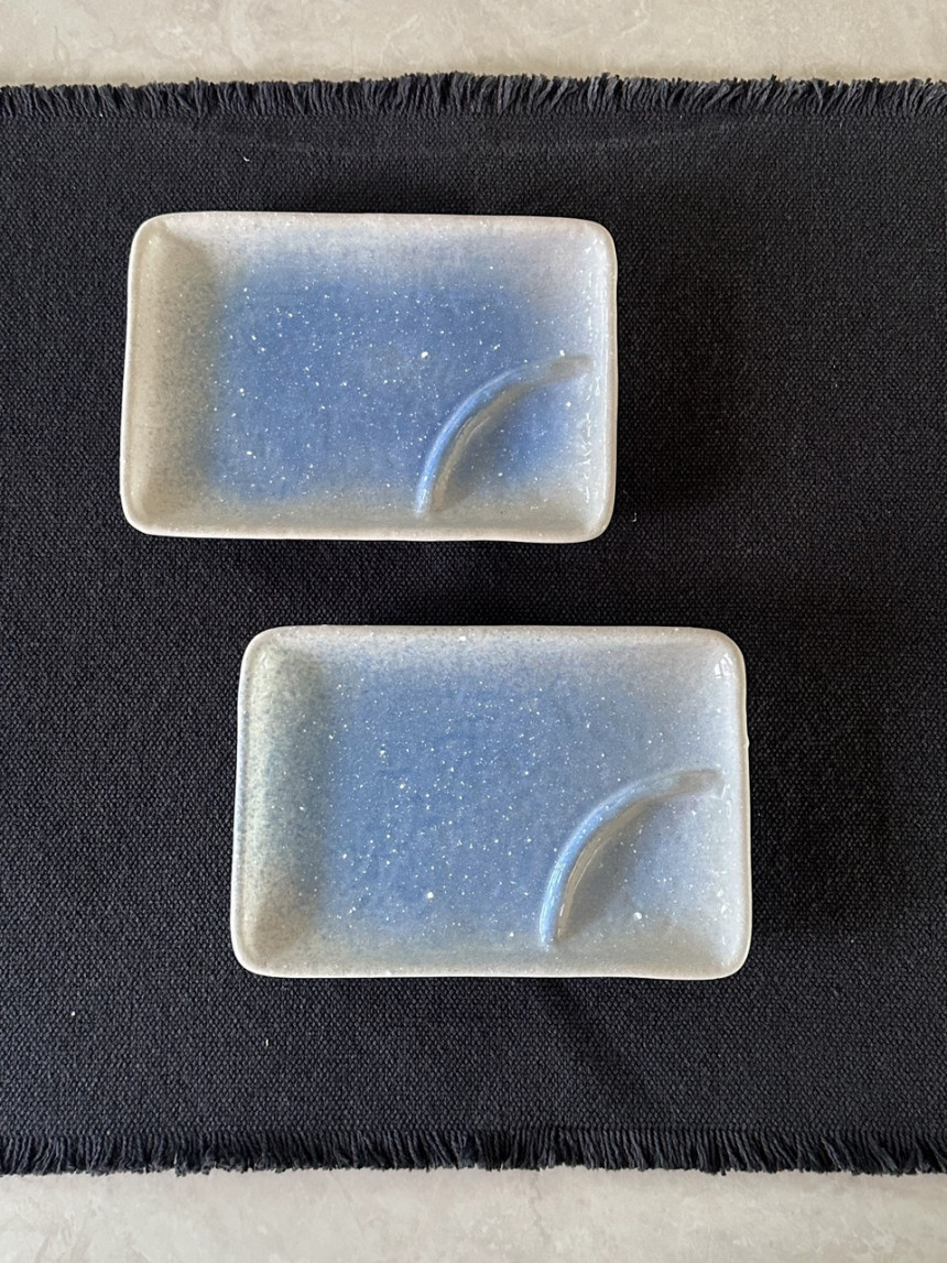 블루 나눔 접시 바탕에 옅은 블루 색상을 깔고 하얀점들을 박아 초저녁을 연상케 하는 그릇이에요.