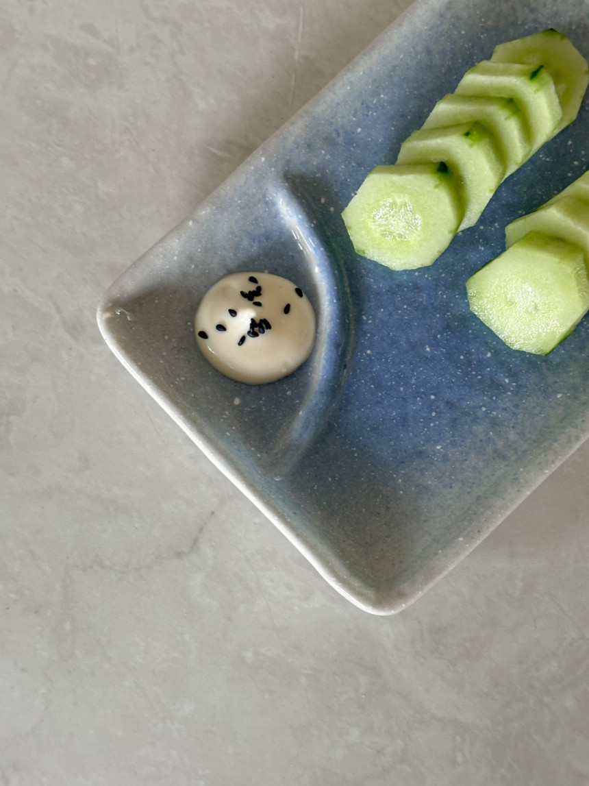 또한 2칸나눔 접시로 하나의 접시에 소스류까지 담을수 있는 유용한 접시랍니다.