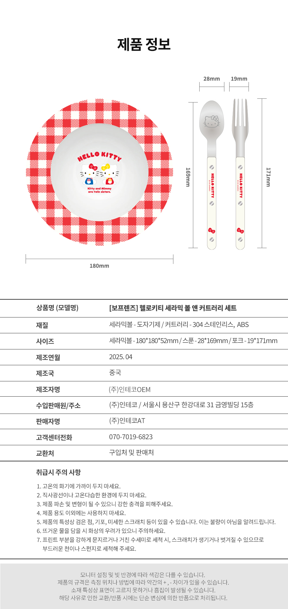 [보프렌즈] 헬로키티 세라믹 시리얼볼, 커트러리 세트