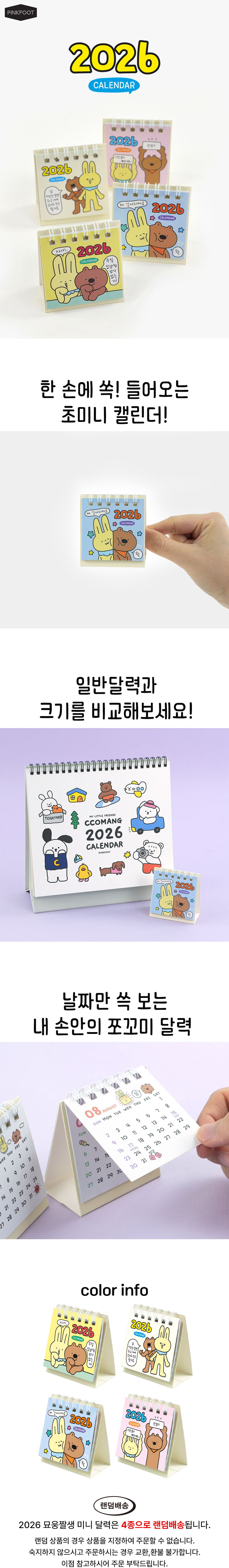 [핑크풋]2026 묘웅짤생 미니달력 (랜덤발송)