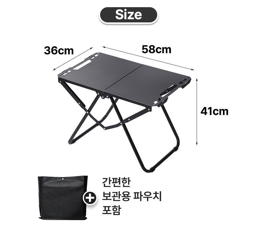어디서나 간편하게 들고 다니며 사용할 수 있는 편리한 아웃도어 테이블입니다.