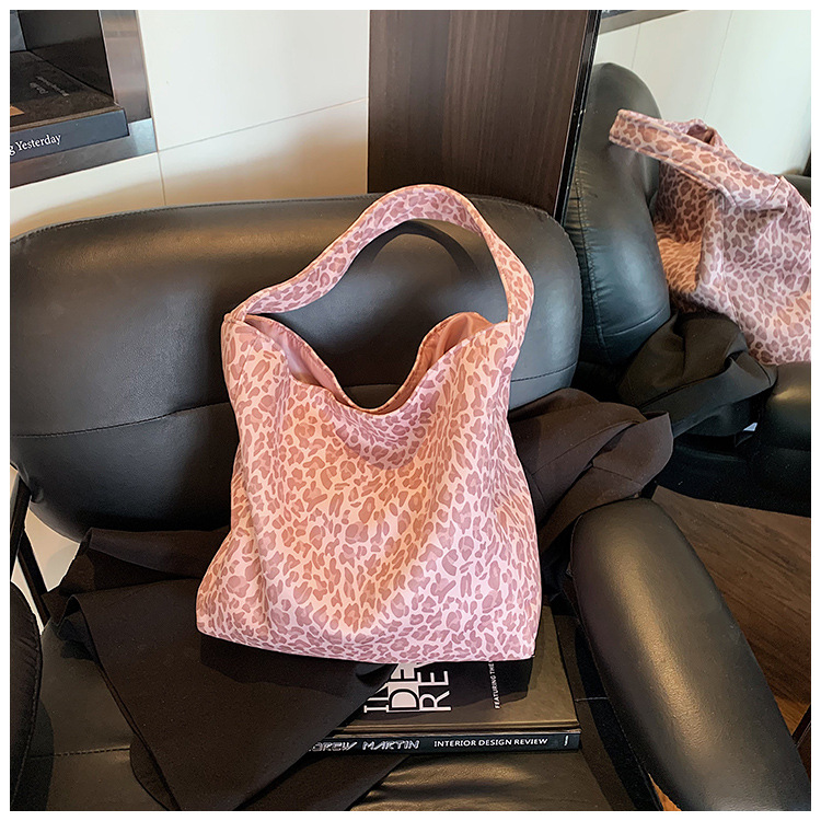 Pink Leopard Canvas Big Shopper Tote Bag