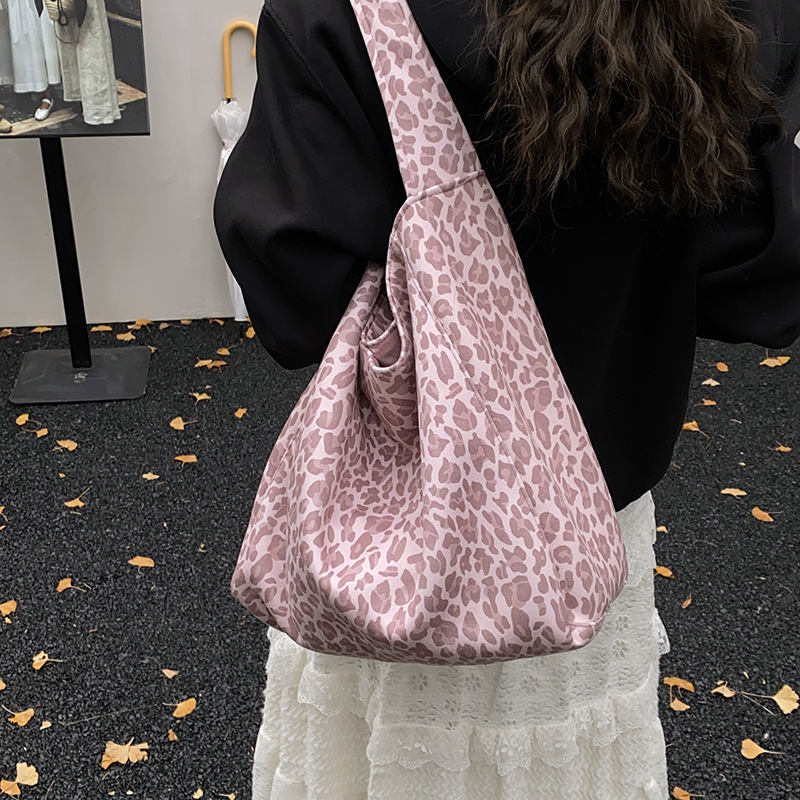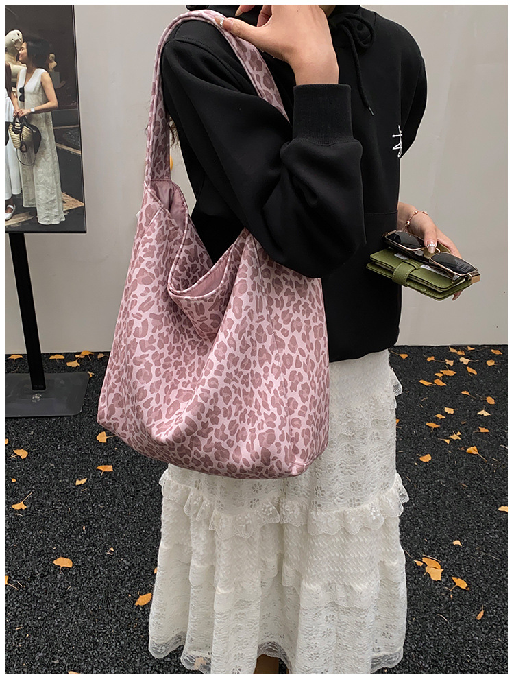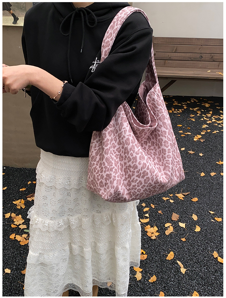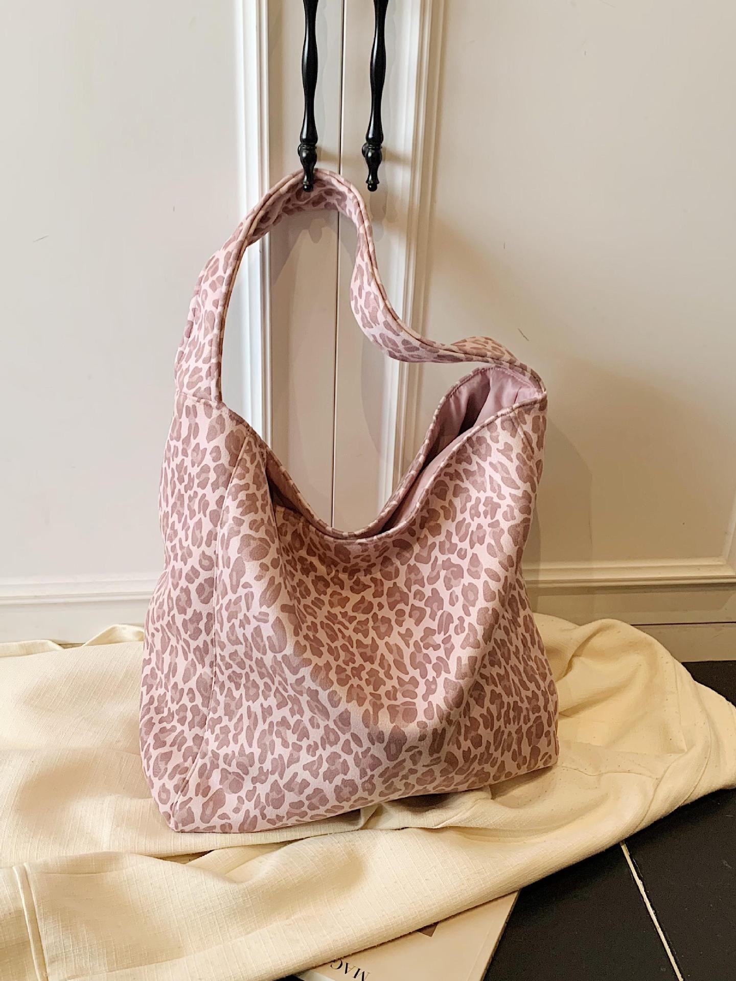 핑크 레오파드 캔버스 빅 쇼퍼 토트백