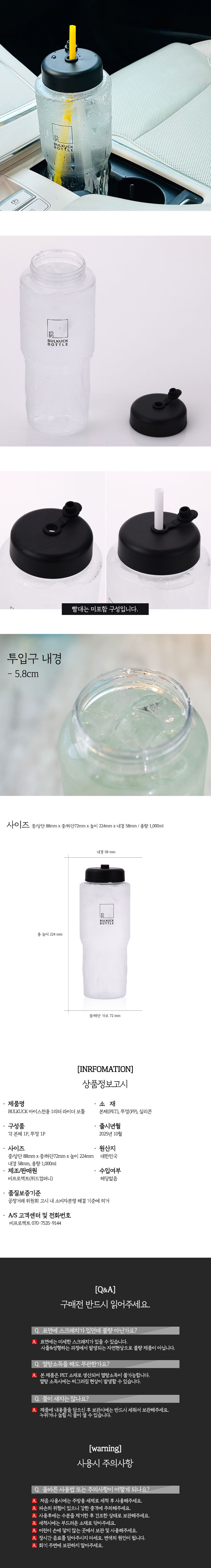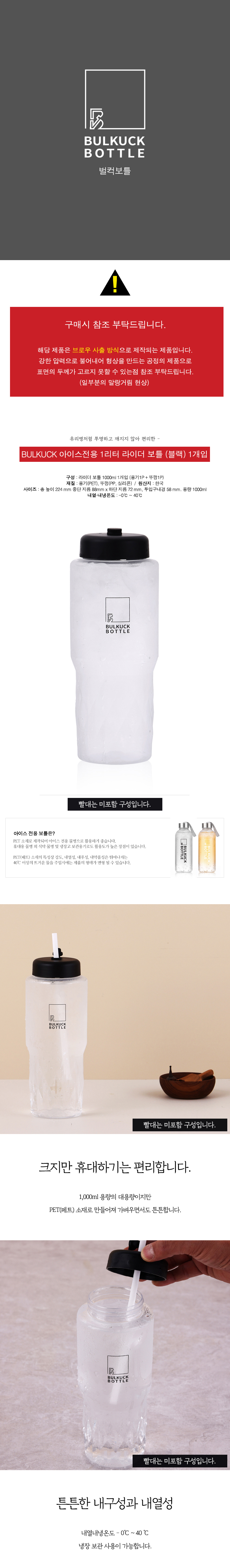 BULKUCK 아이스전용 1리터 라이더 보틀 (블랙) 1개입