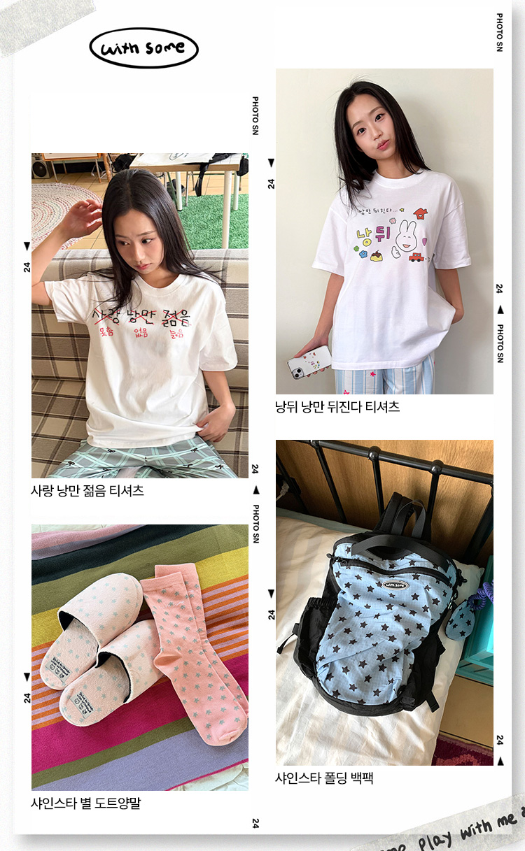 [미나 착용] [withsome made]마라 고앵이 누우면 복이와요 티셔츠