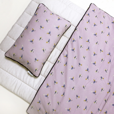 치수 : 베이비 블랭킷(6온스 누비이불) 85 x 105 cm / 베개커버(누빔) 40 x 25 cm 또는 50 x35cm / 낮잠이불용 양면패드(10온스) 70 x 130 cm