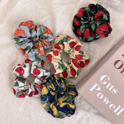 프롬 체리 패턴 스크런치 곱창끈 헤어끈