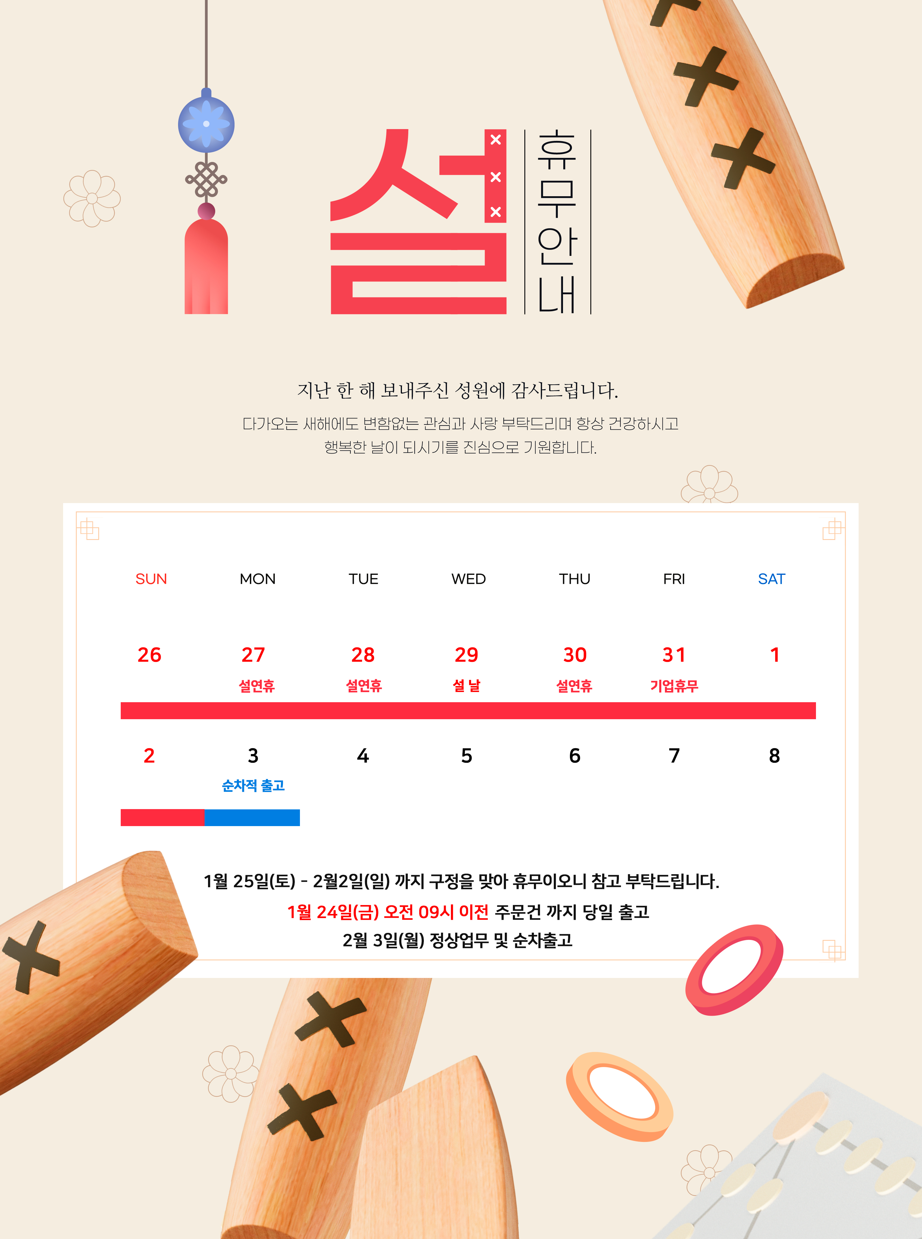 2025년 추석연휴로 인한 휴무로 택배배송 안내 드립니다.