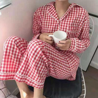 여자 여행 파자마 준비 체크 무늬 잠옷 상하의 세트