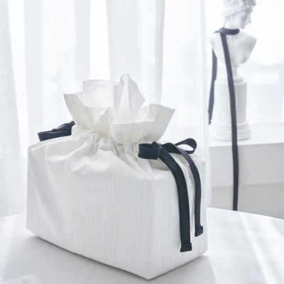 (국내산)감성 플리츠 블랙리본 스트링 직사각 휴지케이스 티슈커버