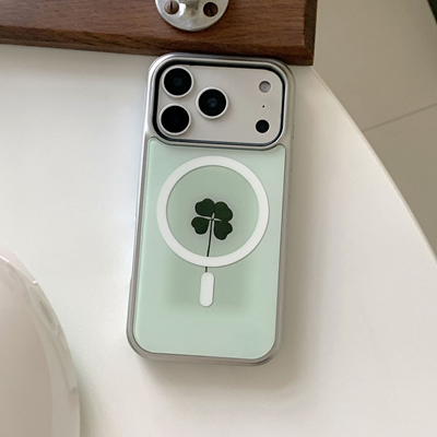 [범퍼실버]그린 네잎클로버 맥세이프 폰 케이스