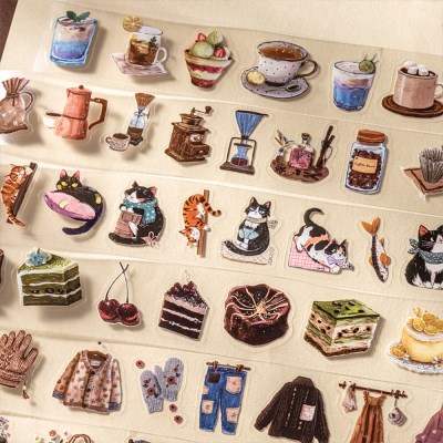 빈티지 소품 케이크 디저트 고양이 일러스트 다꾸 마스킹테이프