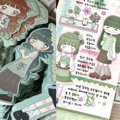 우산 조각 소녀들&벚꽃 말차 조각 소녀들