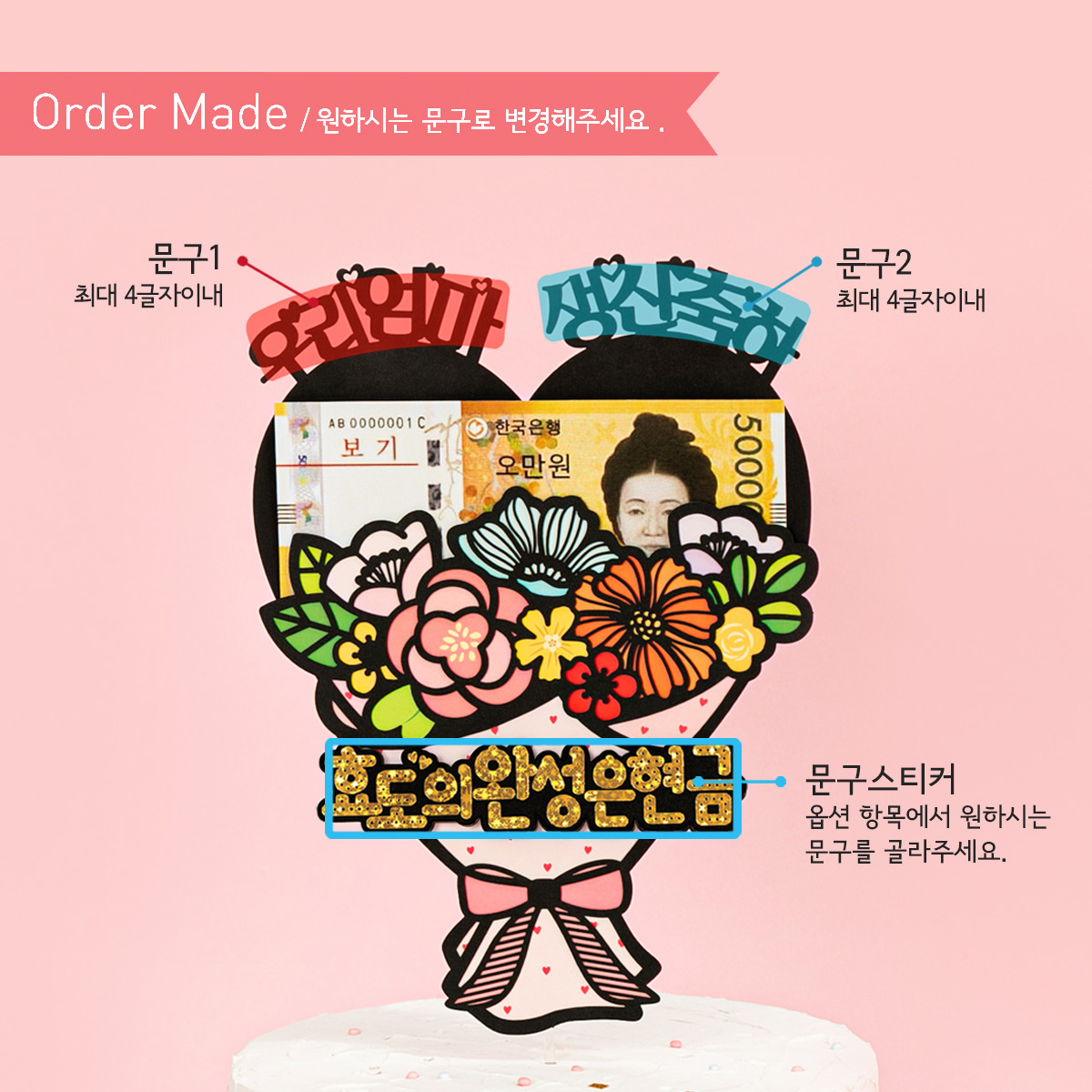| -------------------------------------------------- ✔️ 배송 일정 관련 중요 공지 ---------------------------------------------------- - 본상품은 주문 제작 상품으로 주문 제작에 평균 1~2일 정도 일정이 소요되고 있습니다. - 주문완료시 바로 제작에 들어가므로 취소가 불가합니다. 😭 신중한 구매 부탁드려요! -------------------------------------------------- ✔️ 문구 제작 관련 중요 공지 ---------------------------------------------------- - 특수문자 입력은 어렵습니다. 특수문자(♡!~&^^$# 등)를 요청하셔도 특수문자는 빼고 제작을 진행합니다. 하트는 저희가 작업하면서 기본적으로 넣어 드리고 있습니다. |