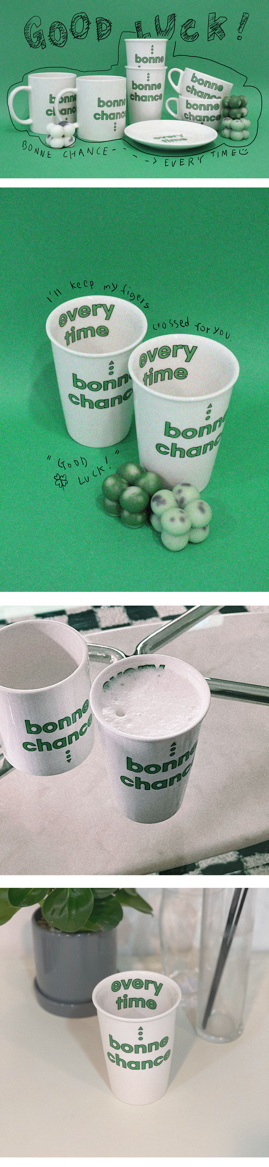 | " Good Luck " '행운을 빌어요-!' 라는 메세지를 담은 머그 시리즈 입니다. 심플한 형태의 도자라인으로, green 컬러포인트가 돋보이는 아이템입니다. (size) 82*82*115 300ml (!!!!!!!) 수작업으로 이루어지는 제품의 작업 공장상 인쇄 표면에 작은 기포나 흰 반점 혹은 프린트 소실이 생길 수 있으며, 컵의 크기와 모양이 미세하게 다를 수 있습니다. 이는 교환/환불 사유에 해당하지 않습니다. 도자기 사용 및 관리법 * 전자레인지 사용 가능합니다. * 오븐 사용은 급열에 의한 파손위험이 있습니다. * 식기세척기 사용은 가급적 피해주시길 바랍니다. |