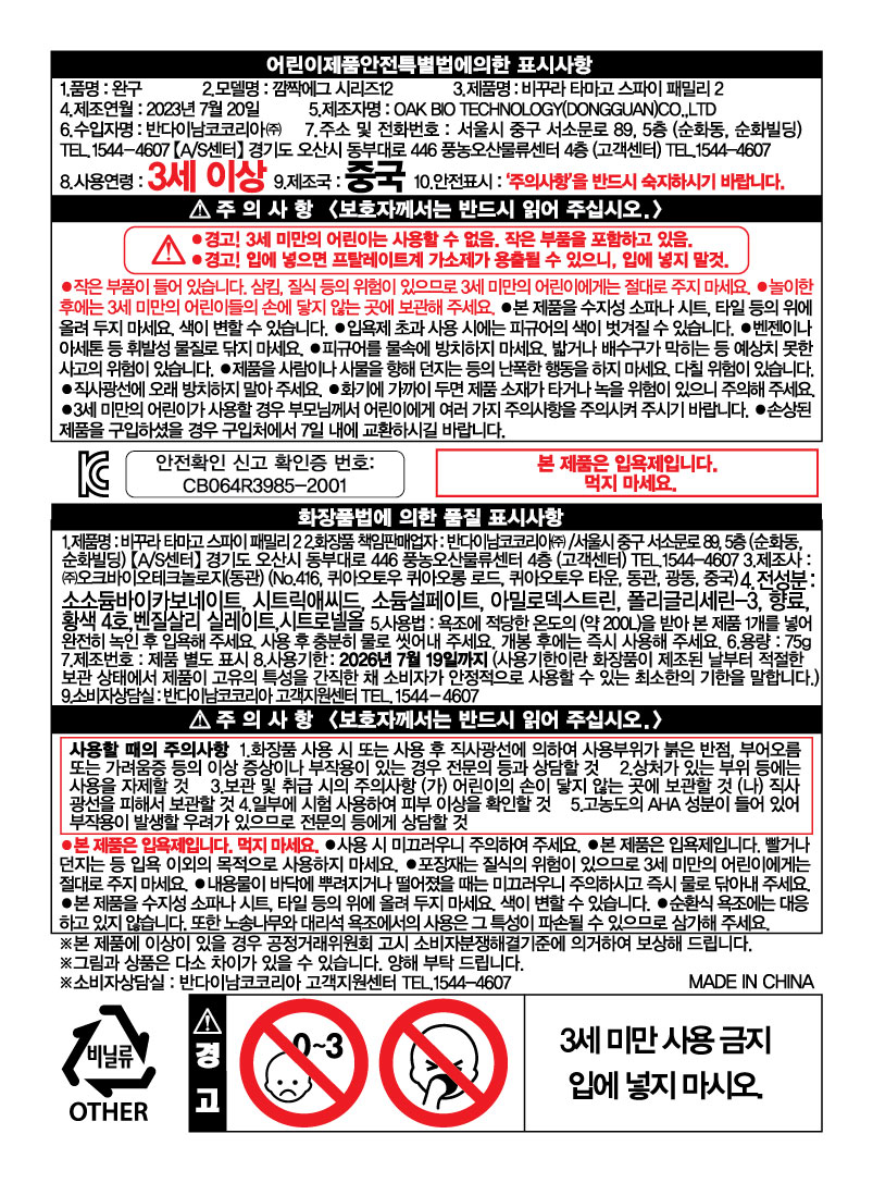 • 마스코트 포함 입욕제 1개