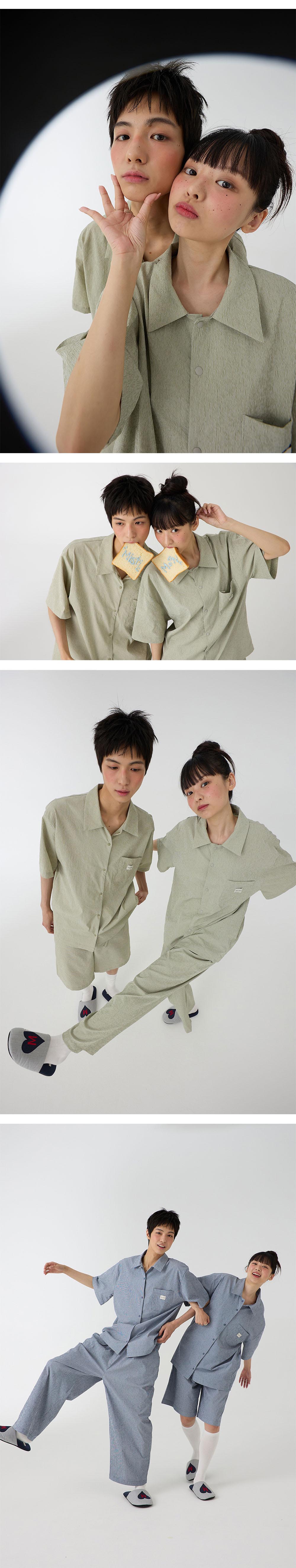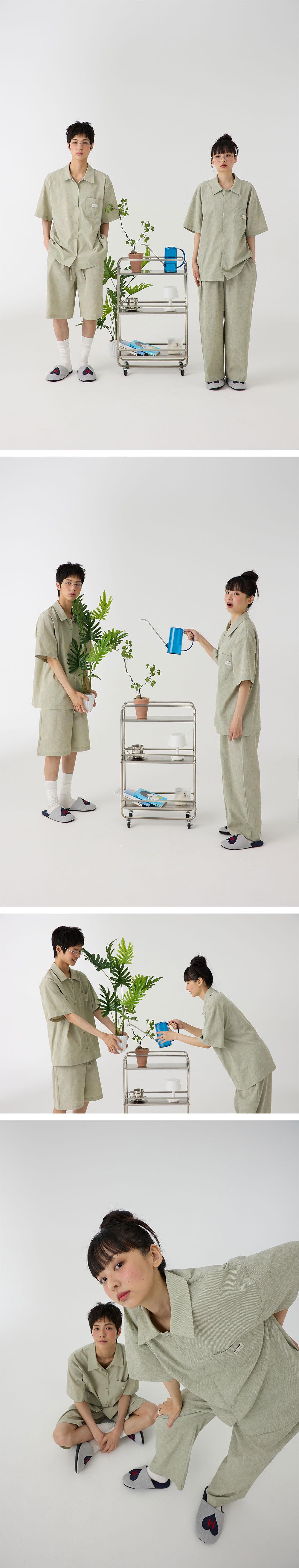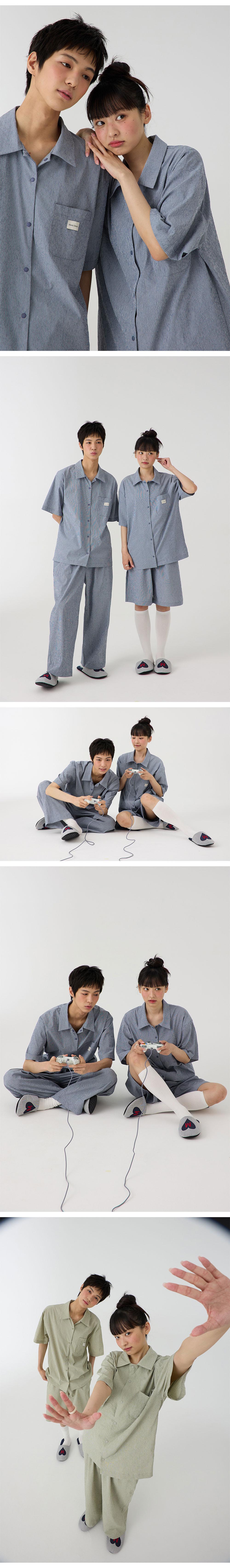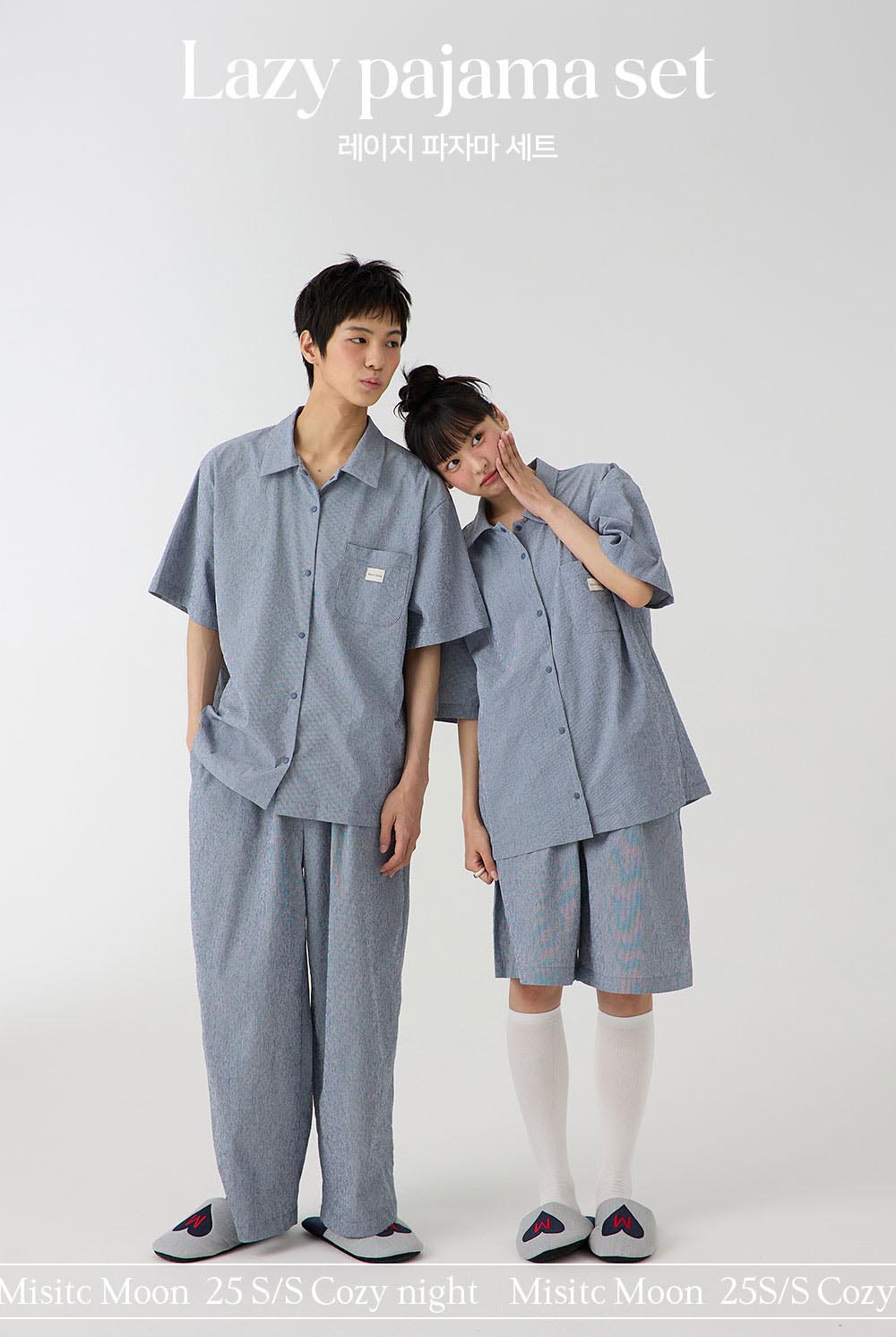 빈티지한 무드의 시원하고 가벼운 소재의 파자마 세트 입니다.