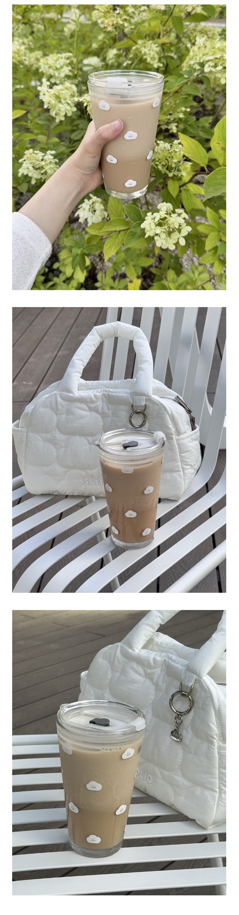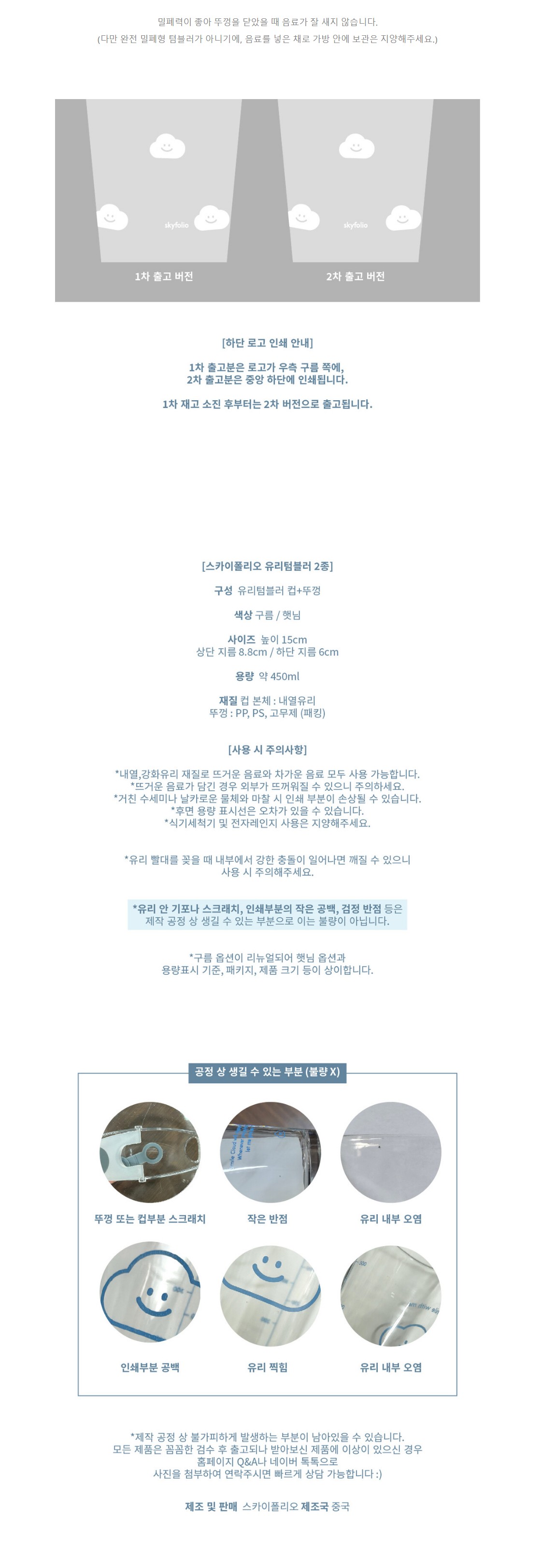 스카이폴리오의 흰구름 패턴 유리 텀블러 입니다 :)