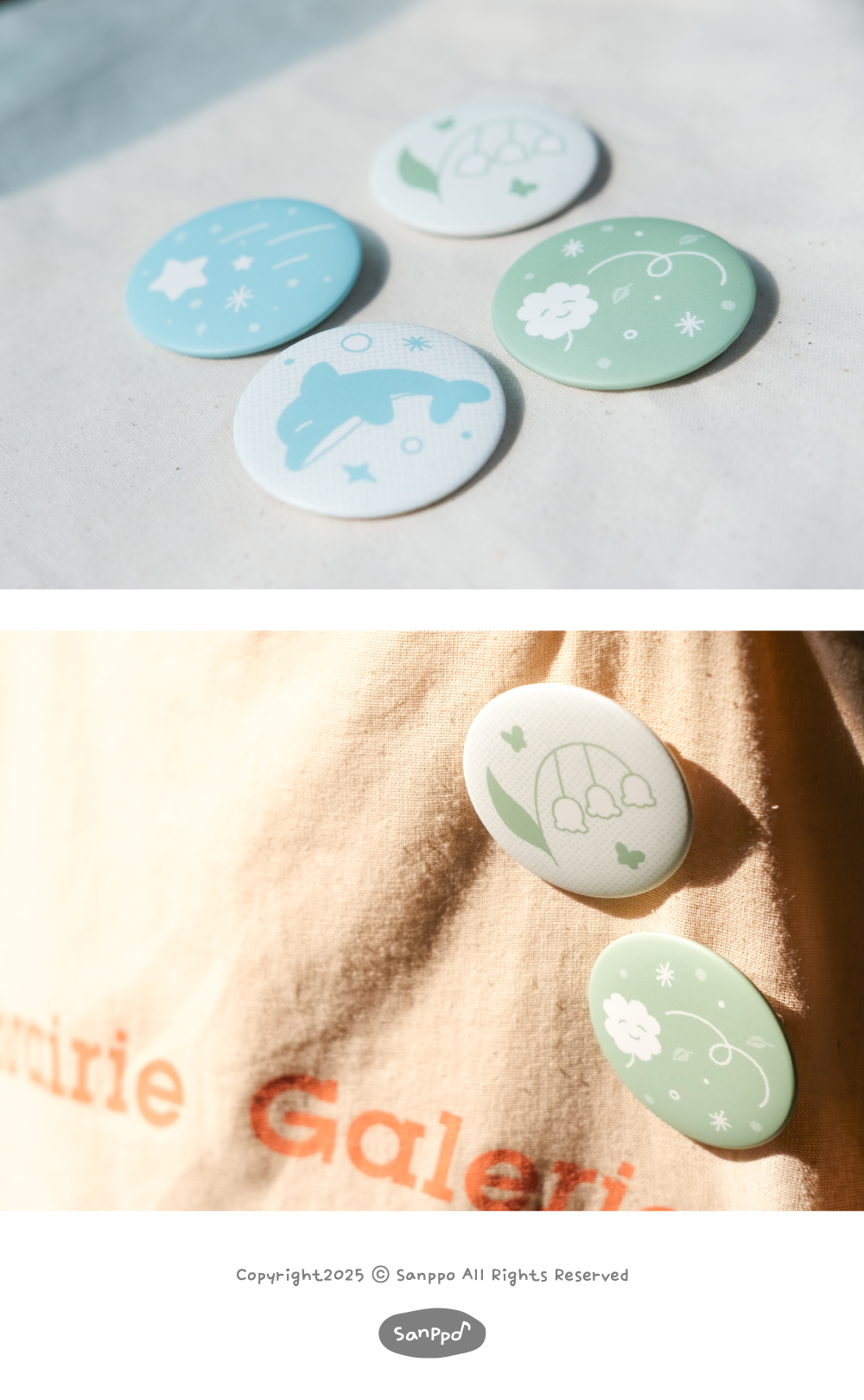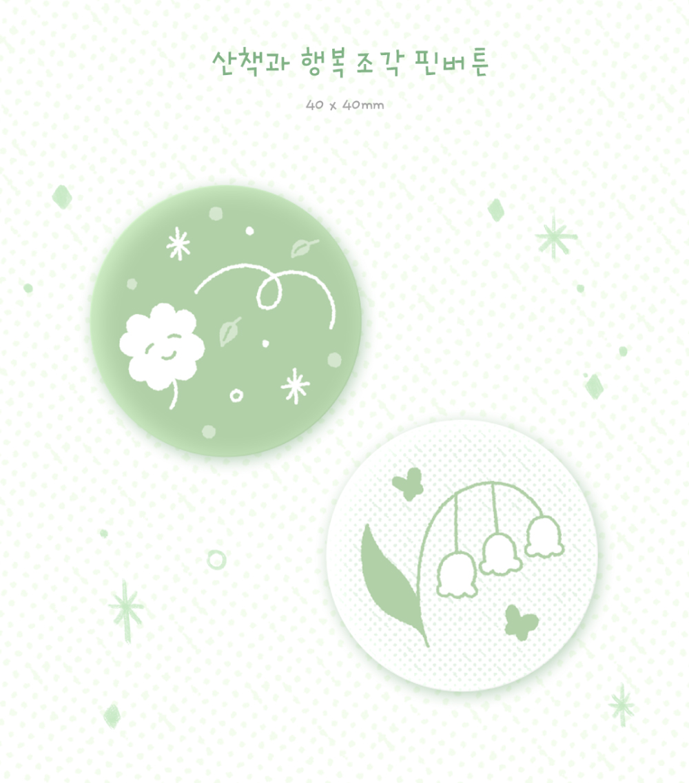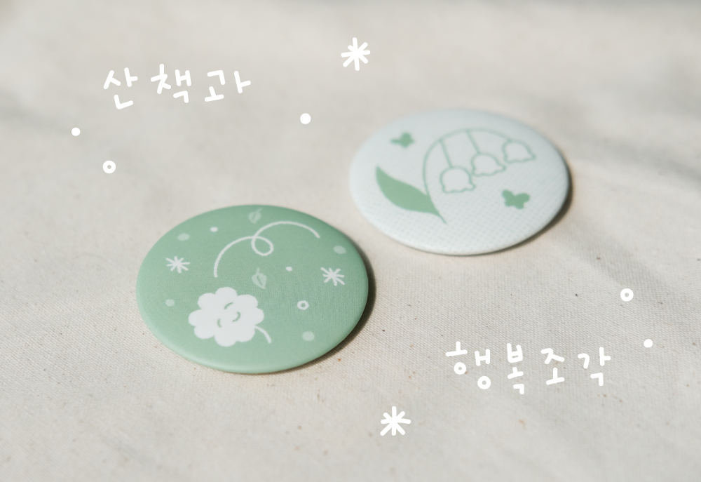 산책에서 느낀 행복의 순간을 일러스트로 담아낸 핀버튼입니다.