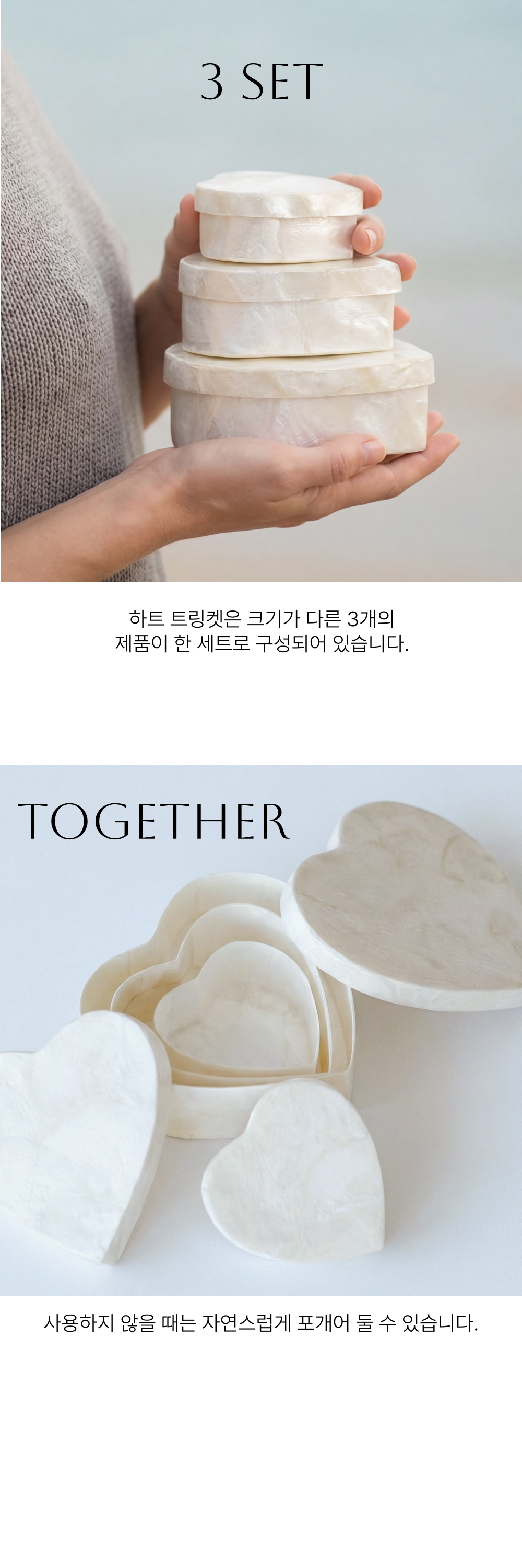 3개 사이즈로 제작되어 악세사리와 소품 등 다양하게 보관할 수 있습니다.