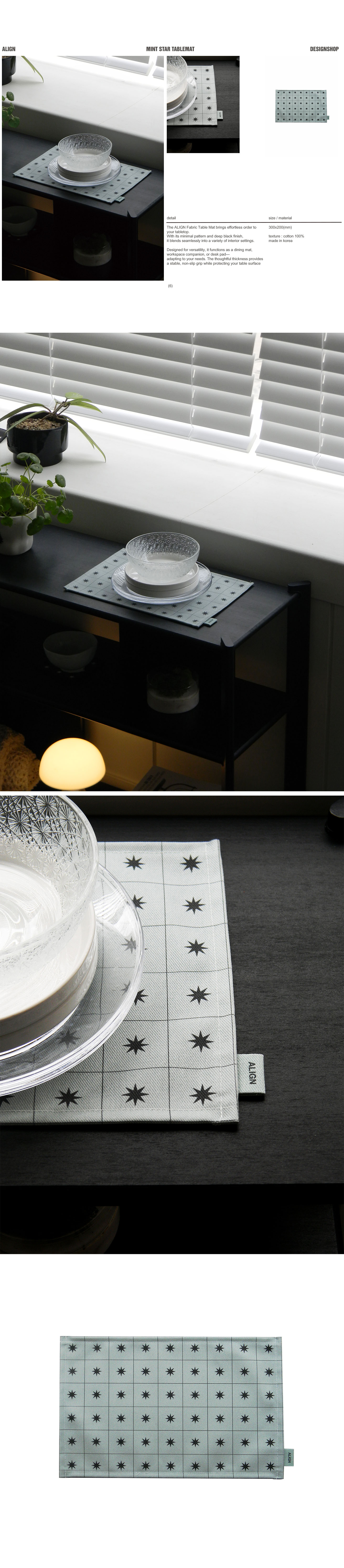| 테이블 위를 정리해 주는 패브릭 테이블 매트입니다. 심플한 패턴과 블랙 컬러로 다양한 공간에 자연스럽게 어울립니다. 식사 매트, 작업 매트, 데스크 패드 등 용도에 맞게 자유롭게 사용할 수 있습니다. 적당한 두께감으로 미끄러짐을 줄이고 테이블 표면을 보호합니다. texture : cotton 100% made in korea 세탁시 주의사항 - 합성세제 세탁 시 손상 및 탈색의 우려가 있으므로 중성세제 단일 단독 세탁. - 산소 표백제 사용금지, 세탁기 사용 시 울 코스로 만 세탁하십시오. - 컬러 특성상 이염될 수 있으니 단독 물세탁하세요. - 물에 10분 이상 담그거나 심하게 비비거나 비틀어 짜지 마십시오. - 면제품 특성상 세탁 후 원단 수축 현상이 발생할 수 있으며 인쇄 색상이 옅어집니다. 이는 섬유제품의 자연스러운 현상으로 제품 불량 사유에 해당되지 않습니다. -패브릭 프린팅 제품은 잉크 고착 공정으로 인해, 초기에 뻣뻣한 느낌이 있을 수 있으나, 미온수로 세탁 후 사용 시 나아지며 위 사유는 공정 단계에서 불가피하게 발생되어 반품 상품 / 수선 불량 상품이 아닌 정상 제품이오니 안심하고 사용해 주십시오. |
