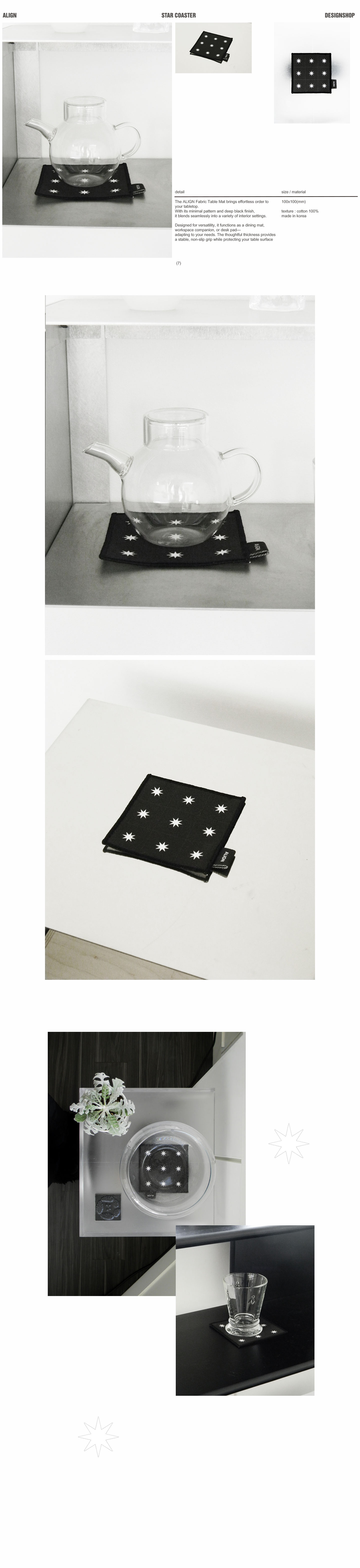 | 단순한 컵 받침을 넘어, 공간의 분위기를 결정짓는 오브제가 됩니다. '별 코스터'는 블랙 캔버스 위에 균형 있게 배치된 9개의 별 패턴으로 모던하고 절제된 아름다움을 전달합니다. 오염 관리가 쉬운 블랙 컬러로 제작되어 일상에서 부담 없이 사용할 수 있으며, 무채색 인테리어는 물론 우드, 스틸 등 다양한 소재의 테이블 위에서 확실한 존재감을 드러냅니다. texture : cotton 100% made in korea 세탁시 주의사항 - 합성세제 세탁 시 손상 및 탈색의 우려가 있으므로 중성세제 단일 단독 세탁. - 산소 표백제 사용금지, 세탁기 사용 시 울 코스로 만 세탁하십시오. - 컬러 특성상 이염될 수 있으니 단독 물세탁하세요. - 물에 10분 이상 담그거나 심하게 비비거나 비틀어 짜지 마십시오. - 면제품 특성상 세탁 후 원단 수축 현상이 발생할 수 있으며 인쇄 색상이 옅어집니다. 이는 섬유제품의 자연스러운 현상으로 제품 불량 사유에 해당되지 않습니다. -패브릭 프린팅 제품은 잉크 고착 공정으로 인해, 초기에 뻣뻣한 느낌이 있을 수 있으나, 미온수로 세탁 후 사용 시 나아지며 위 사유는 공정 단계에서 불가피하게 발생되어 반품 상품 / 수선 불량 상품이 아닌 정상 제품이오니 안심하고 사용해 주십시오. |