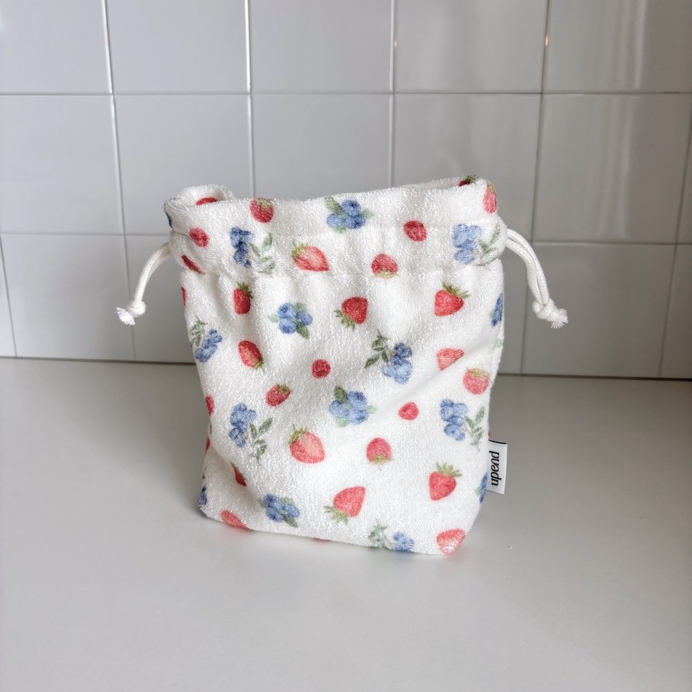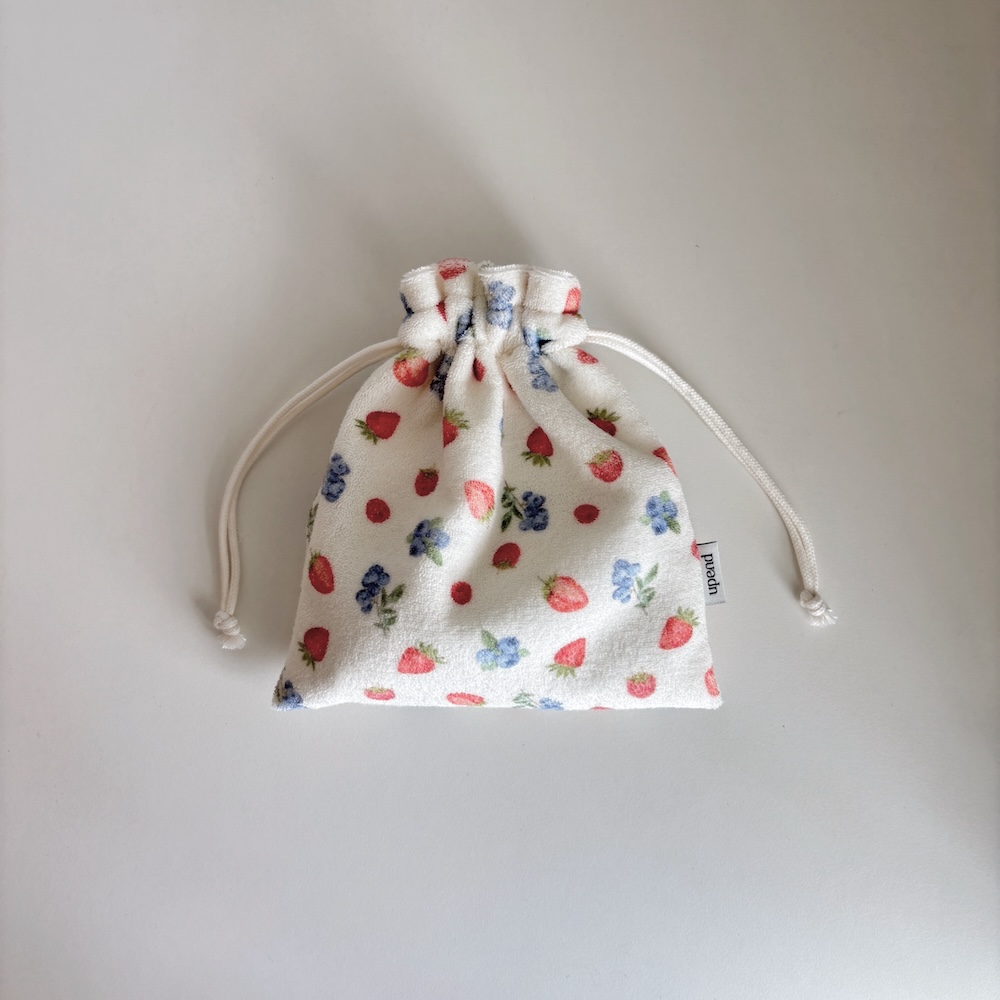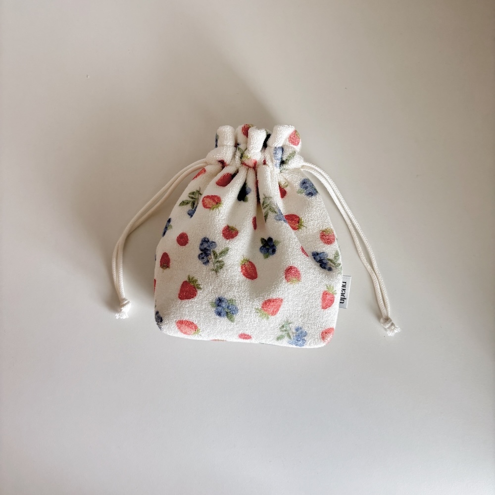 테리 원단으로 만들어진 스트링 파우치 입니다.