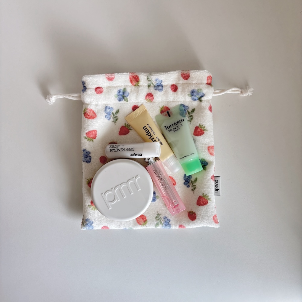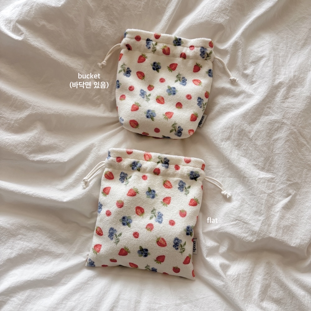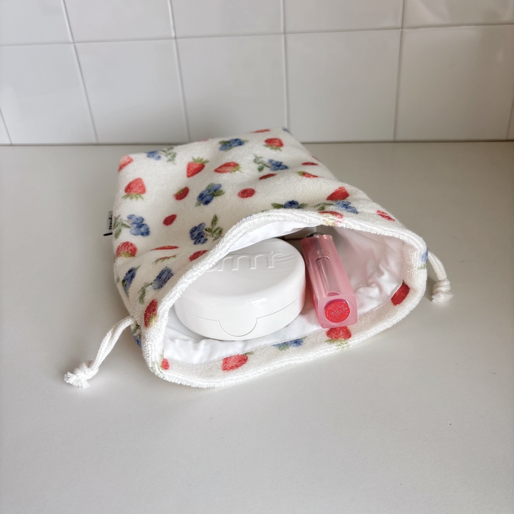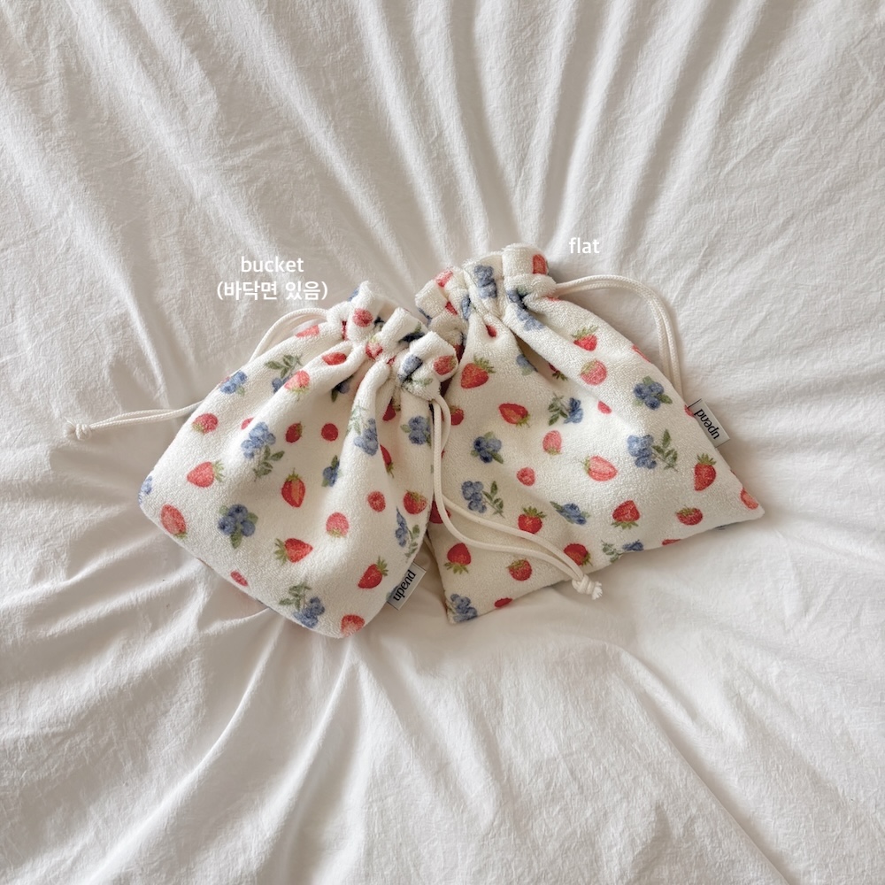 테리 원단으로 만들어진 스트링 파우치 입니다.